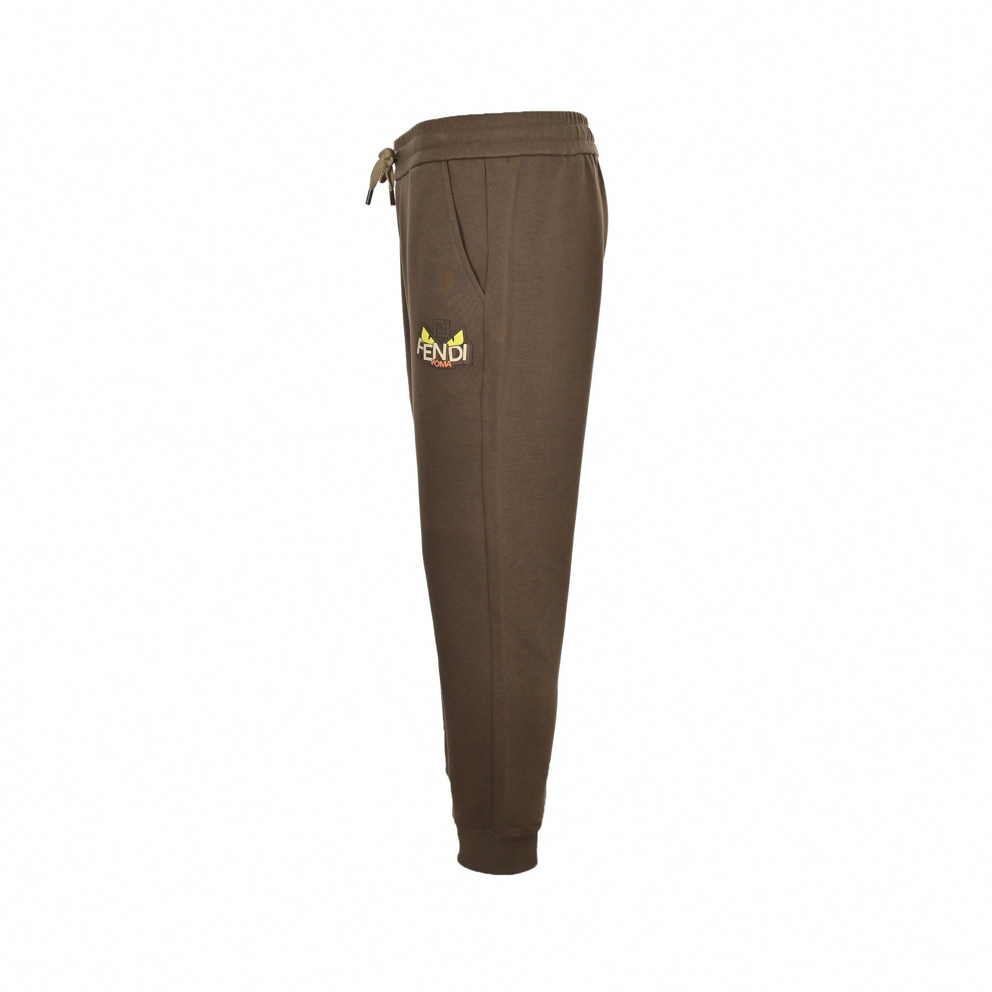 This Fendi Roma tracksuit embodies the House’s bold luxury-sportswear aesthetic, combining comfort with unmistakable branding. Crafted from premium cotton fleece, the set features a hooded sweatshirt and matching joggers in a refined brown tone. The signature Fendi “Eye” motif with layered FF detailing and contrasting accents highlights the chest and leg, delivering a graphic, contemporary statement rooted in Roman heritage. Designed for everyday versatility, the silhouette balances relaxed comfort with elevated finishing, making it ideal for refined off-duty wear.