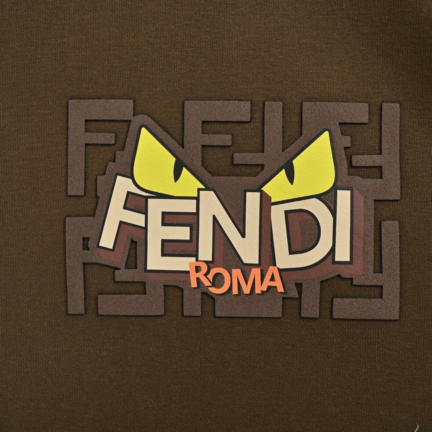 Iconic Fendi Roma “Eye” motif with layered FF graphic on the chest