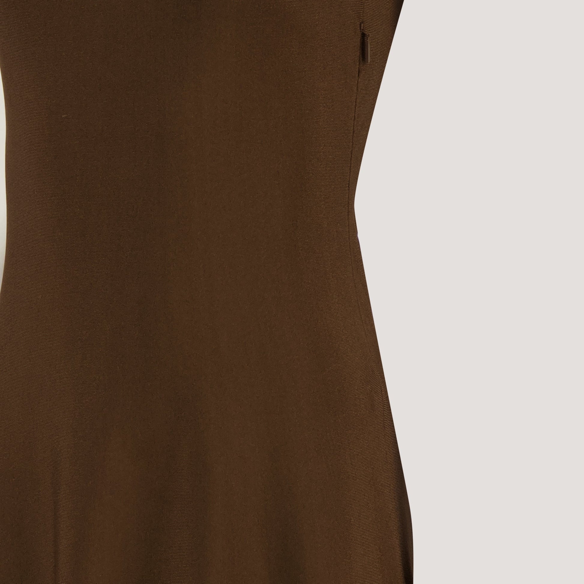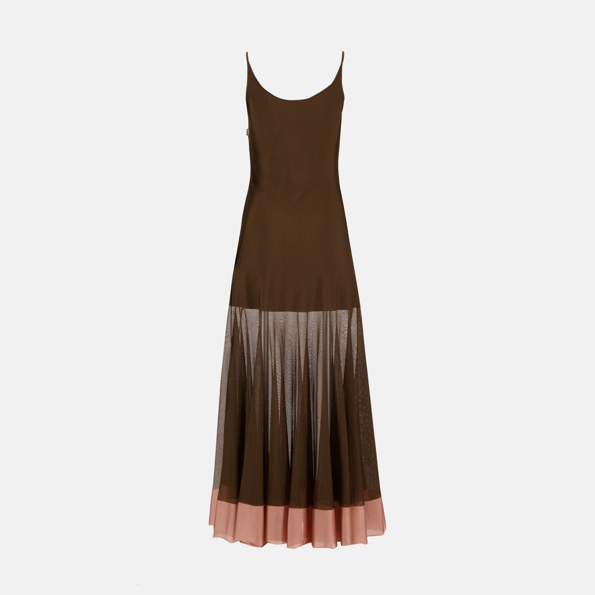 Brown fabric dress by Fendi for women. This piece is part of the Spring-Summer 2025 collection, featuring a round neckline and thin straps.