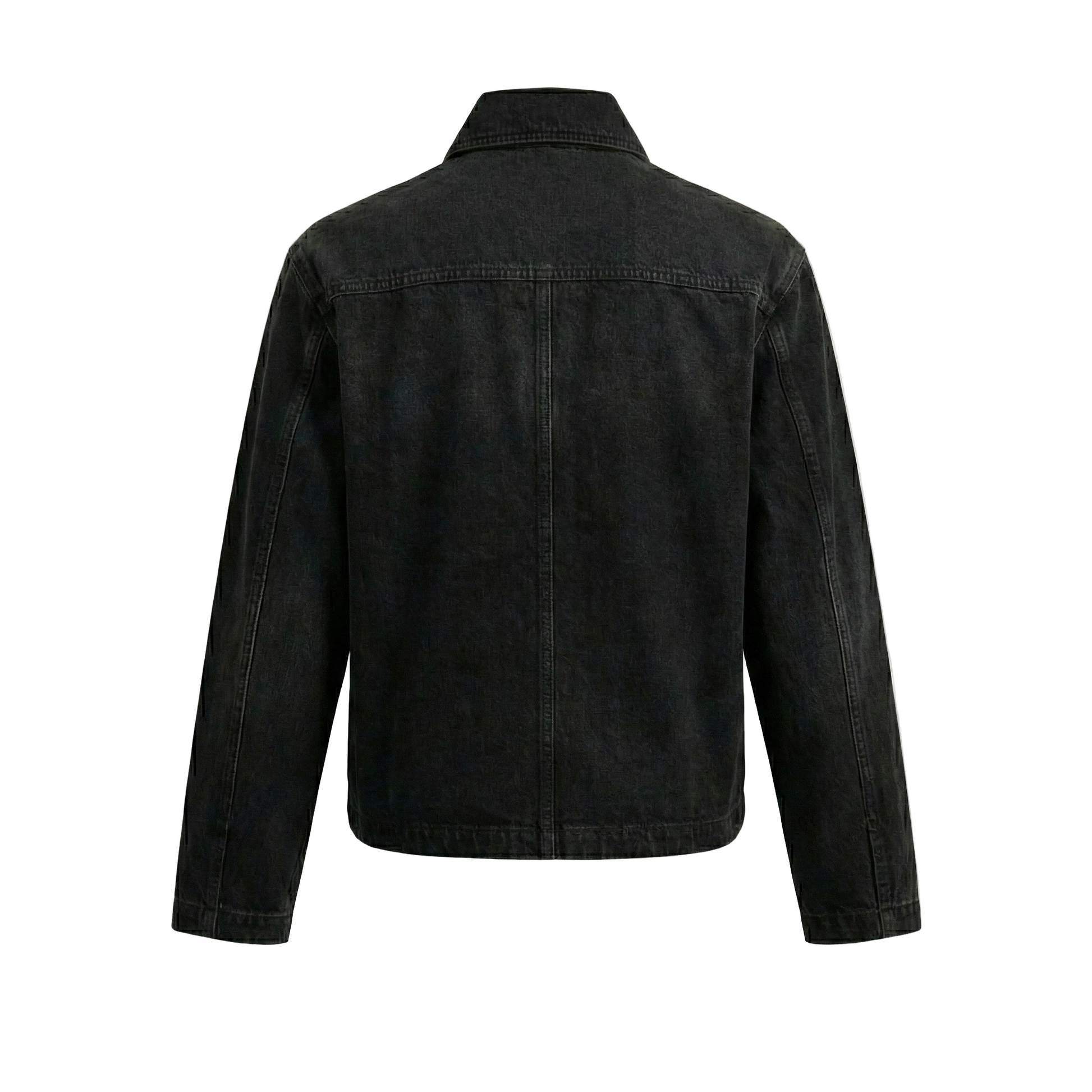 Washed Black Denim: Soft, structured fabric with a premium matte finish.