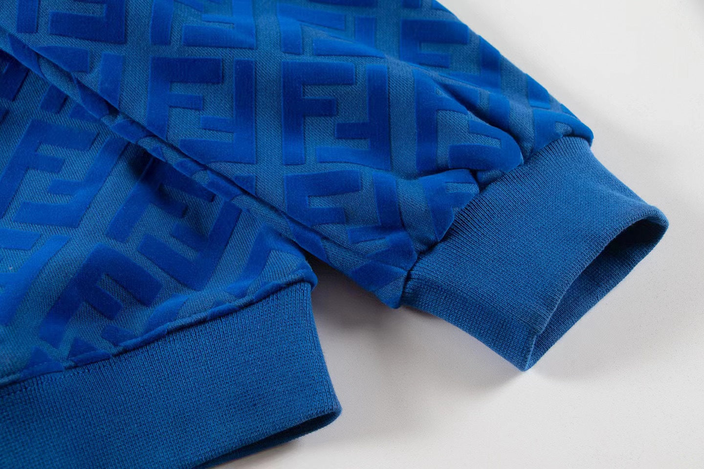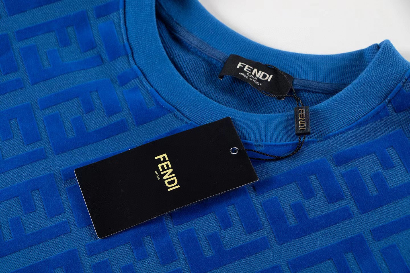 Elevate your casual wardrobe with this striking Fendi Blue Monogram Crewneck Sweatshirt, a standout piece that blends contemporary streetwear with iconic luxury design. Crafted from high-quality, soft-touch fabric, it offers exceptional comfort while maintaining a refined, structured silhouette. The sweatshirt showcases Fendi’s signature all-over FF monogram pattern, subtly embossed in a tonal blue that adds depth and sophistication without overwhelming the look.