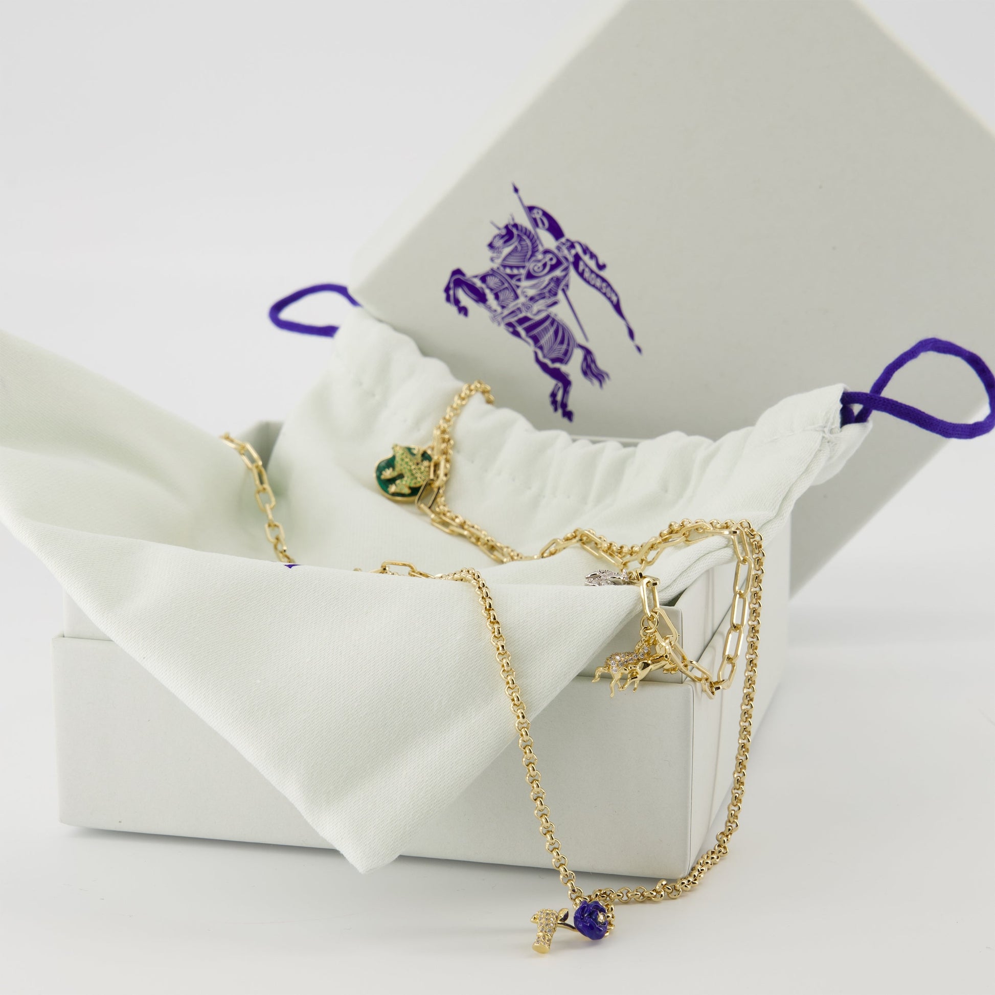 Double row charm necklace in gold from Burberry for women. This piece is part of the Autumn-Winter 2025 collection and features iconic engraved pendants.
