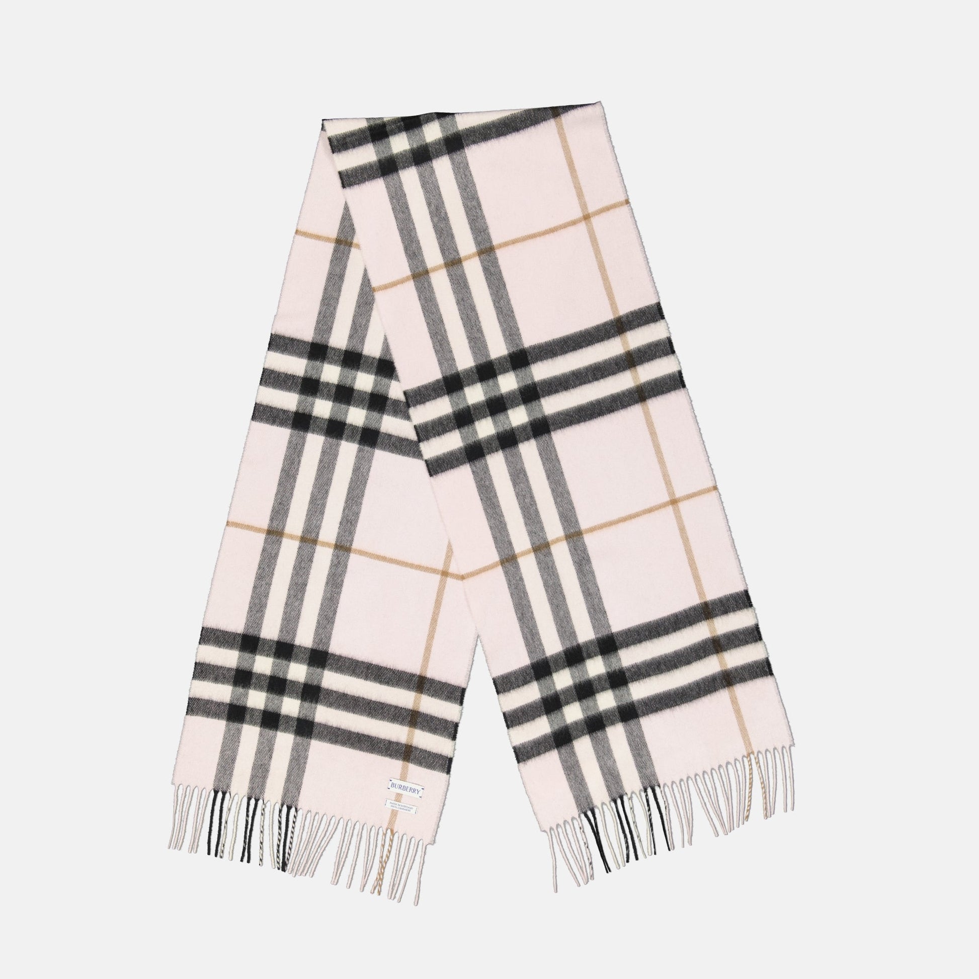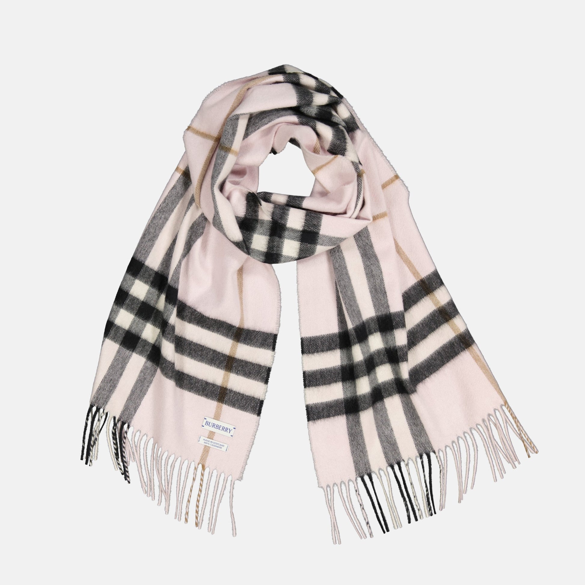 Check plaid scarf in pink from Burberry, made of cashmere. Unisex, it is part of the Autumn-Winter 2025 collection.