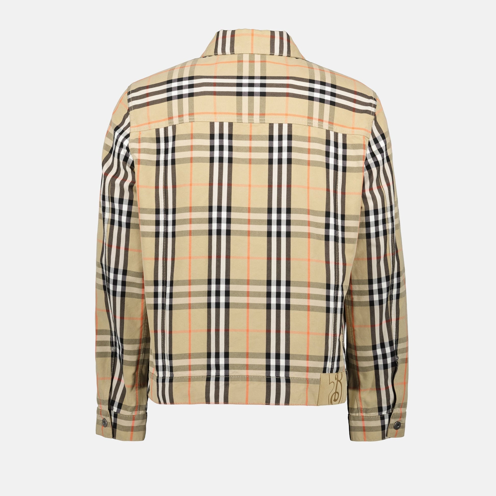 Plaid beige denim jacket by Burberry for men, made of denim with a vintage plaid print. This piece is part of the Autumn-Winter 2024 collection.