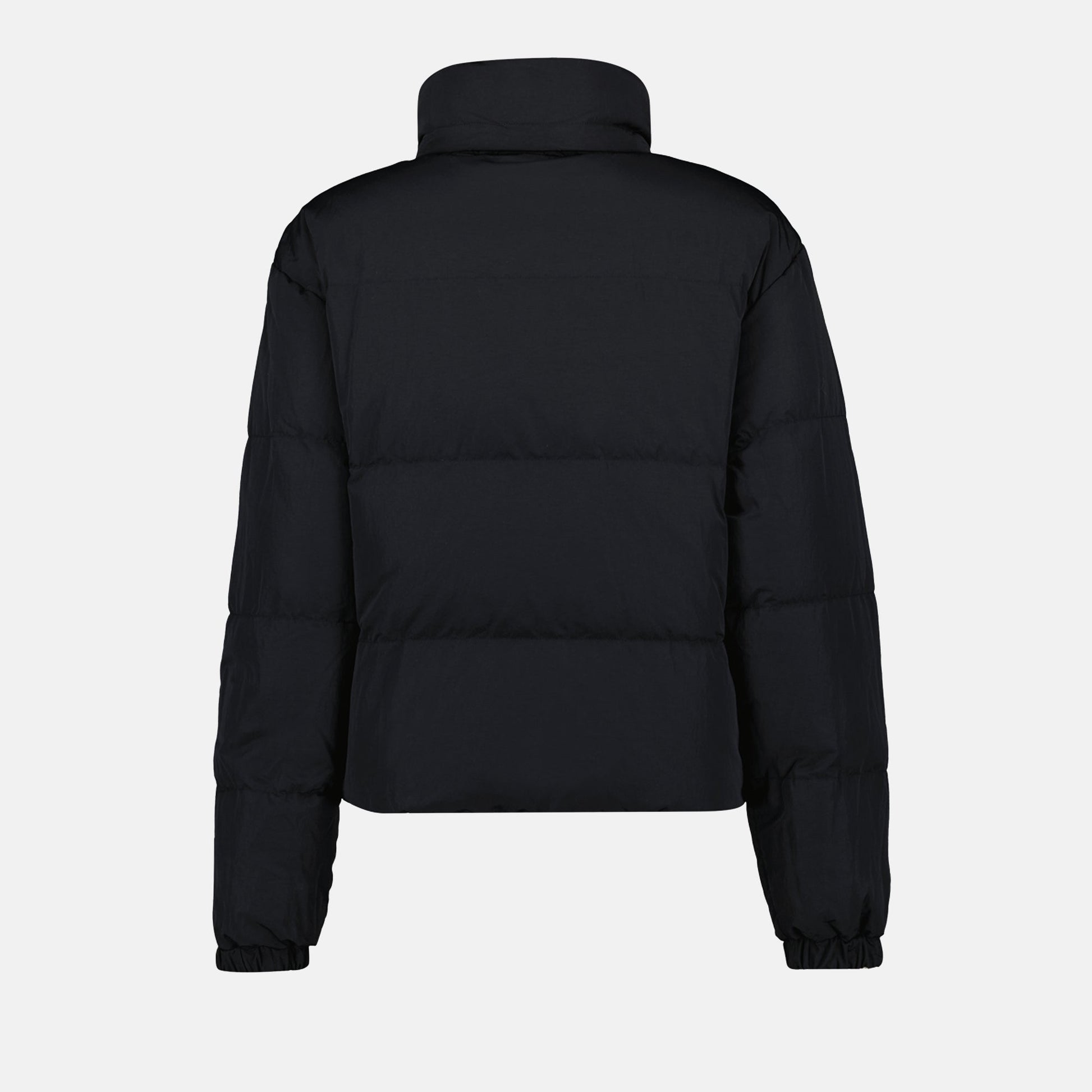Reversible check puffer jacket from Burberry's Fall-Winter 2024 collection for women. Made of nylon. Reversible design. Stand-up collar and long sleeves.