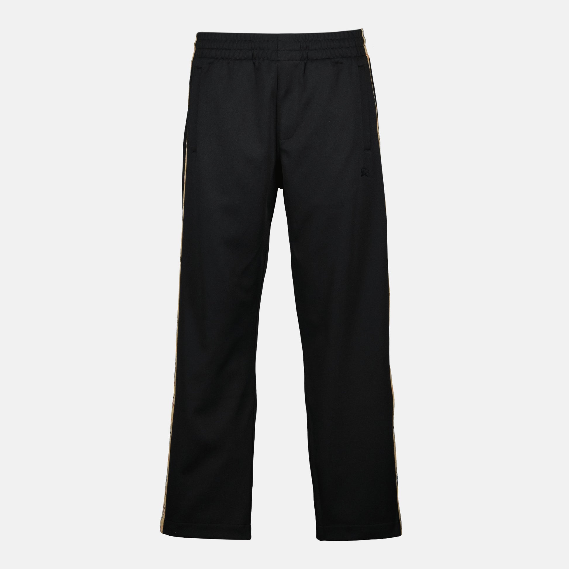 Black sweatpants by Burberry for men from the Autumn-Winter 2025 collection. They feature a straight cut in cotton with iconic details such as the embroidered logo and check side bands.
