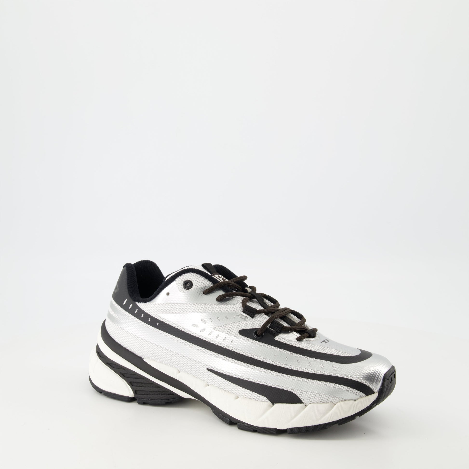 The black-silver Airspeed Sneakers from Diesel are designed for men. They are part of the Spring-Summer 2025 collection and combine dynamic style with comfort using technical materials.