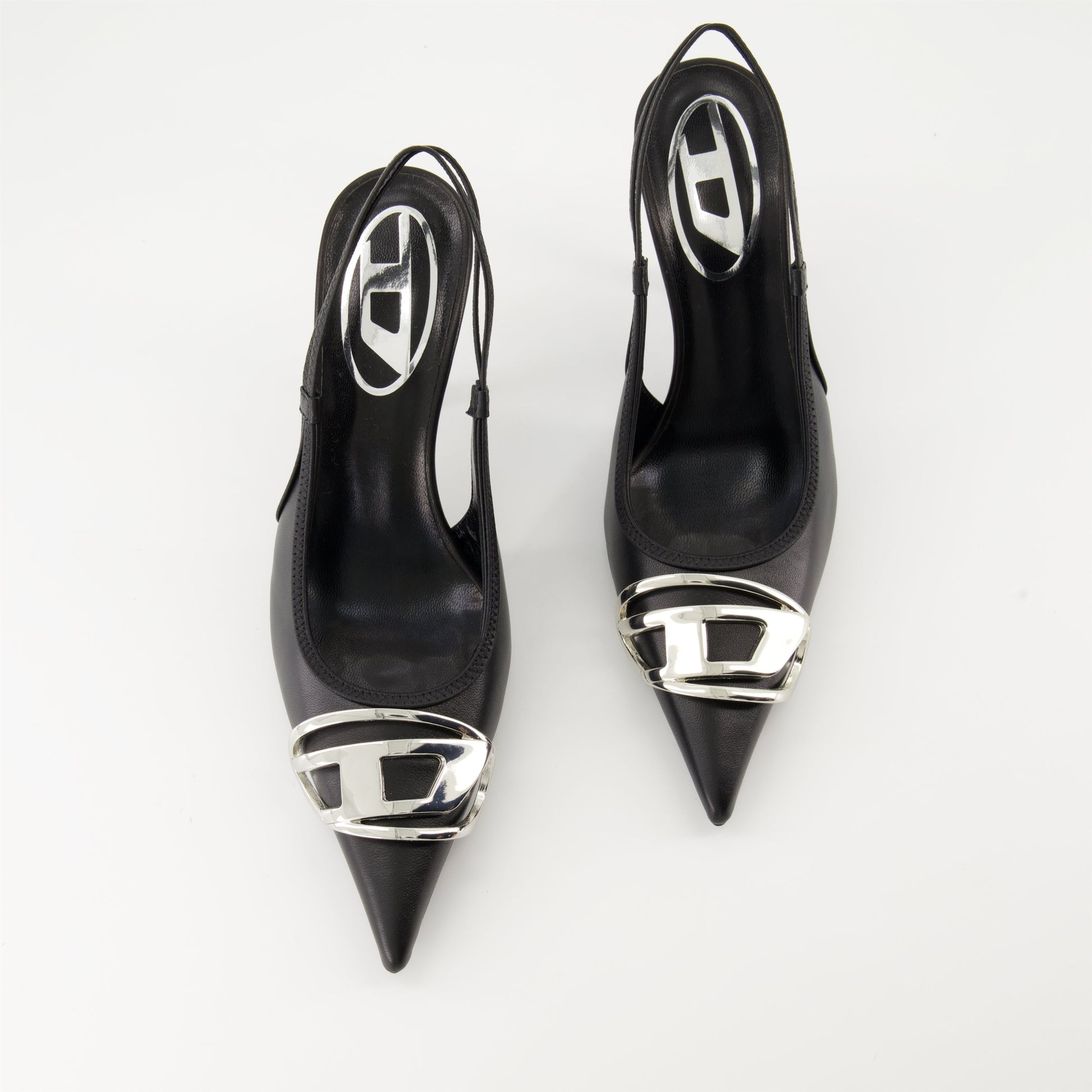 D-Venus leather pumps by Diesel, Autumn-Winter 2024 collection for Women. Made from nappa leather. Item in Black. Pointed toe and leather sole.