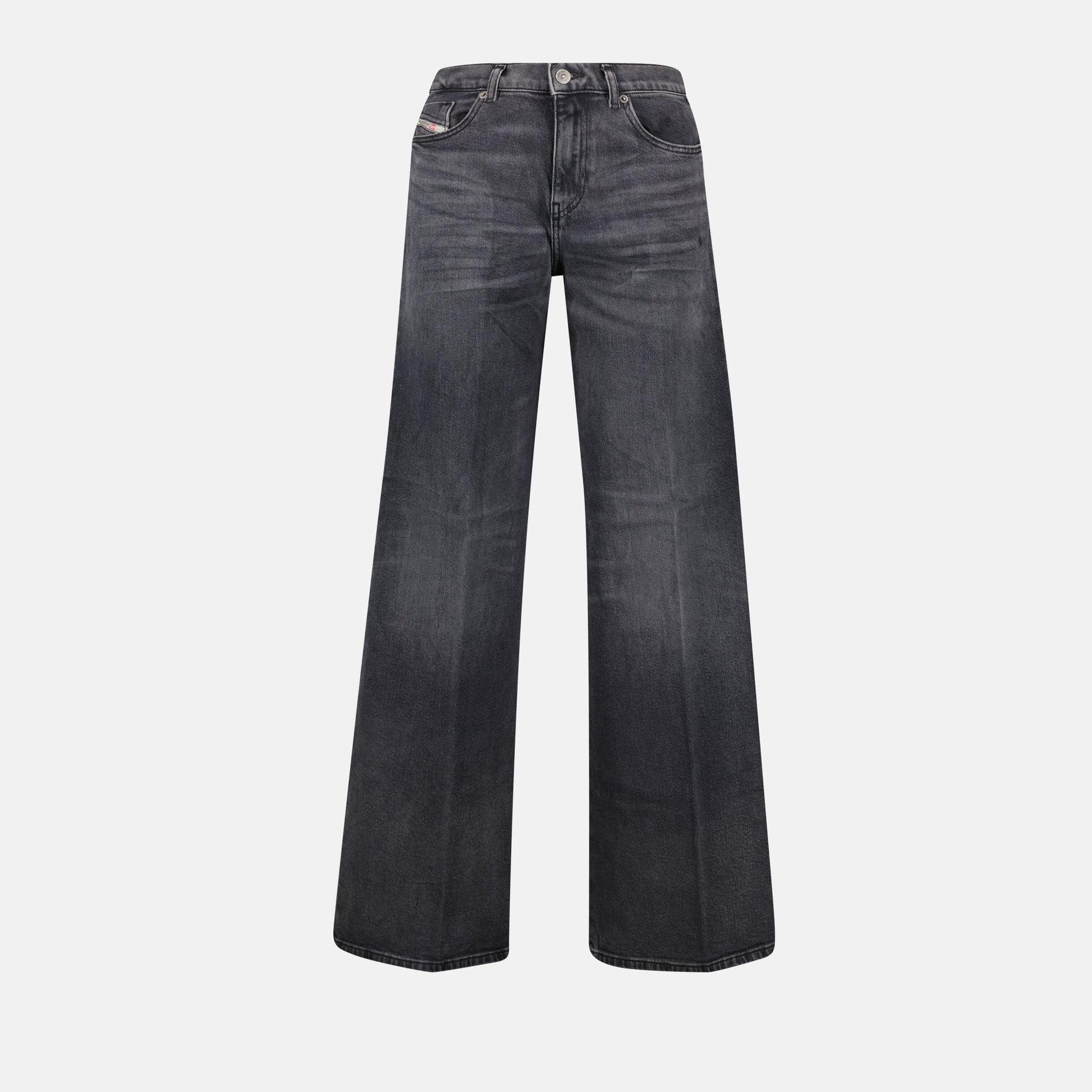 Loose-fitting D-Akemi black jeans for women from the brand Diesel, made of cotton-elastane with a five-pocket design. Part of the Spring-Summer 2025 collection, it offers a casual style.