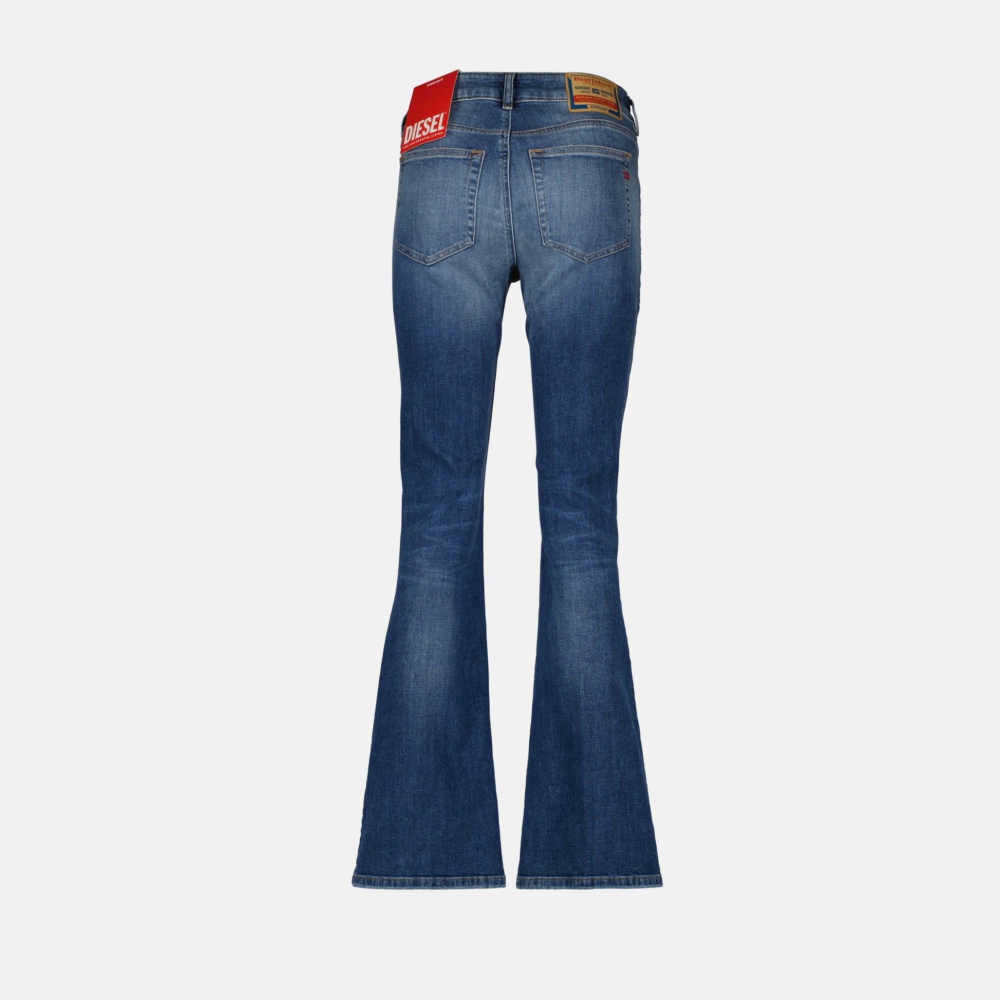Light blue flare jeans from the brand Diesel for women, made of cotton and elastane. Part of the Autumn-Winter 2025 collection, it features a high waist and a five-pocket design.