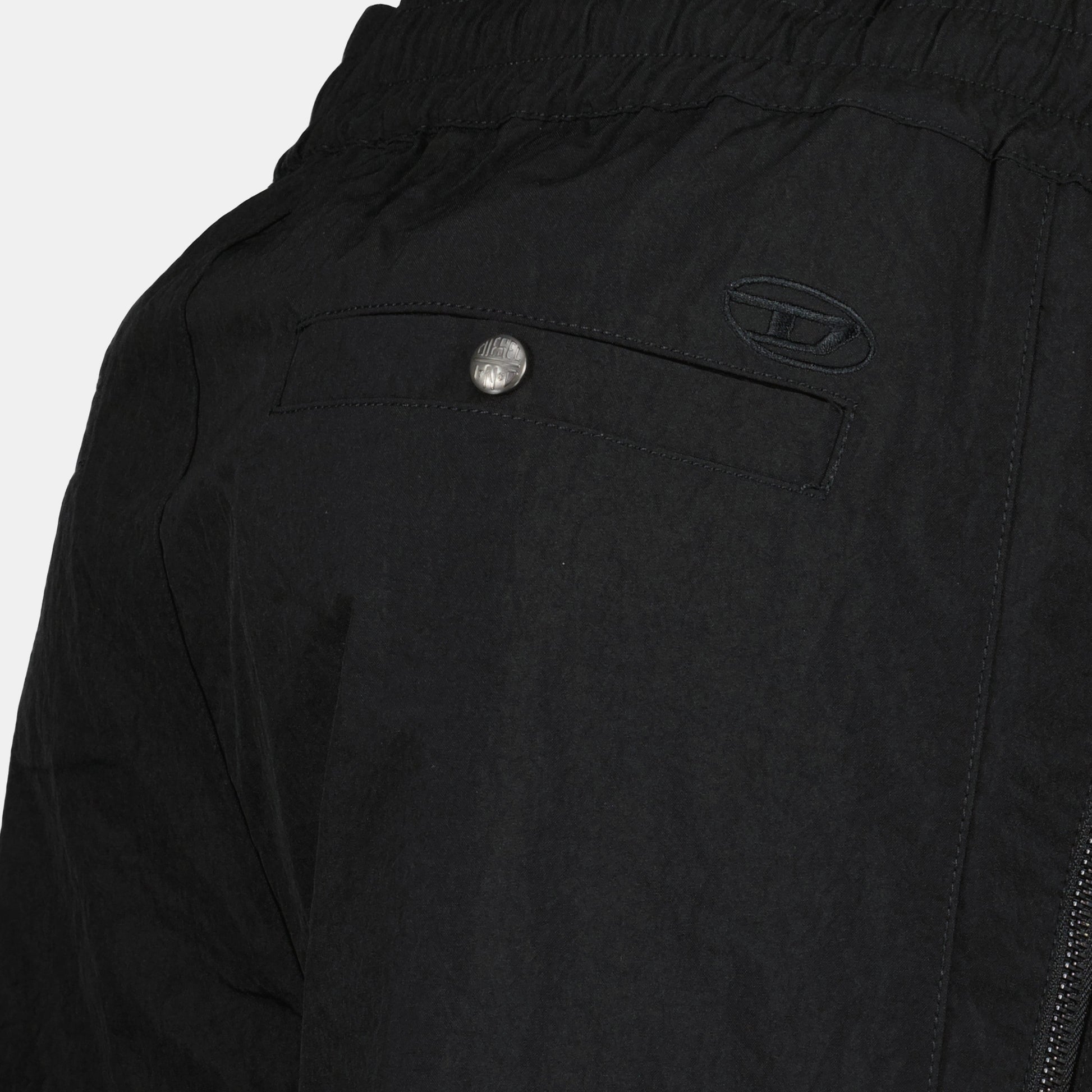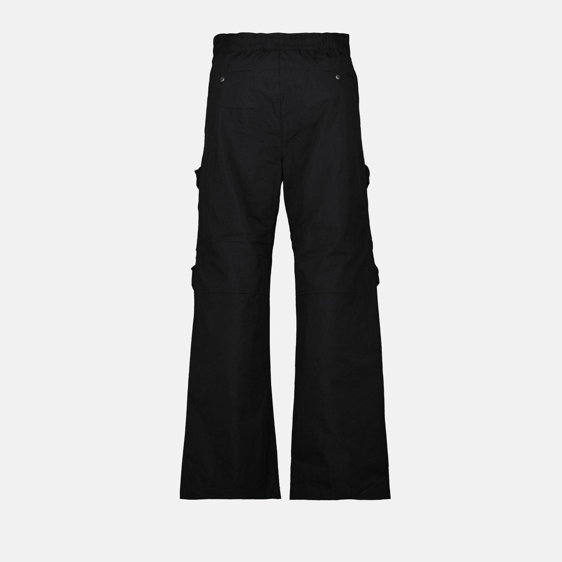 The P-Danzel cargo pants in black nylon from the brand Diesel are designed for men. They are part of the Spring-Summer 2025 collection and offer a practical five-pocket design.