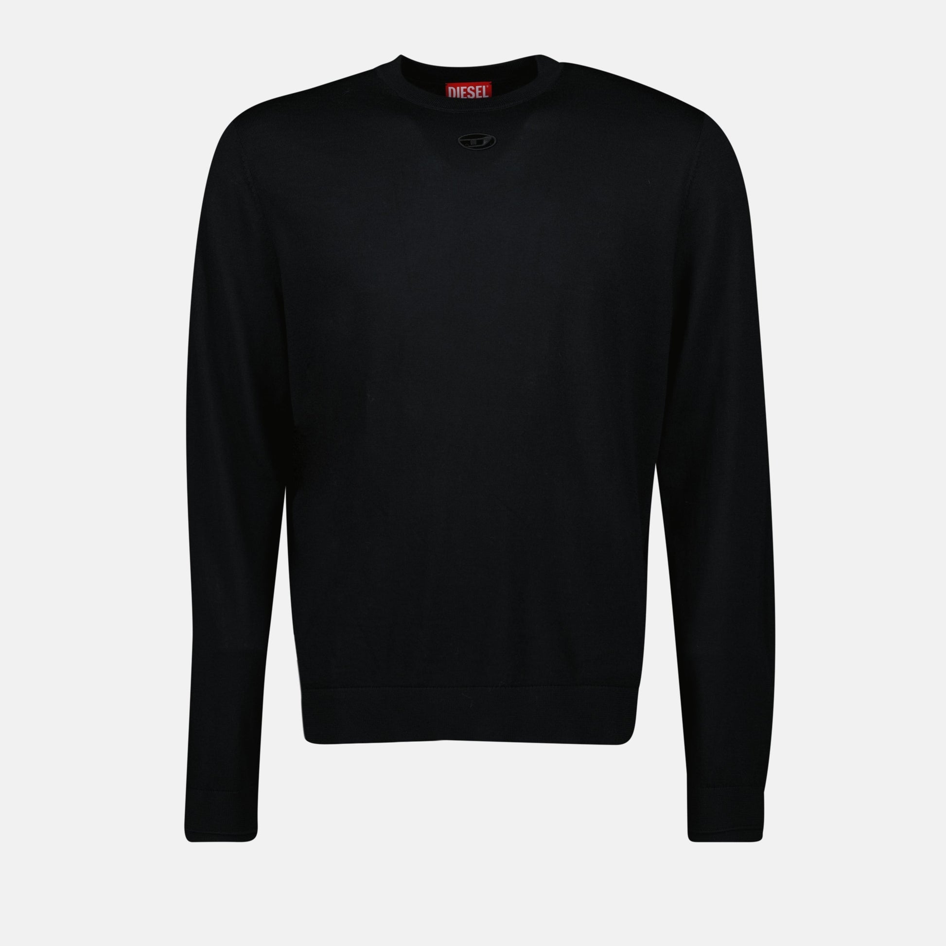 Black K-Valiam sweater from the brand Diesel, designed for men, made of wool with a slim fit. This model is part of the Spring-Summer 2025 collection.