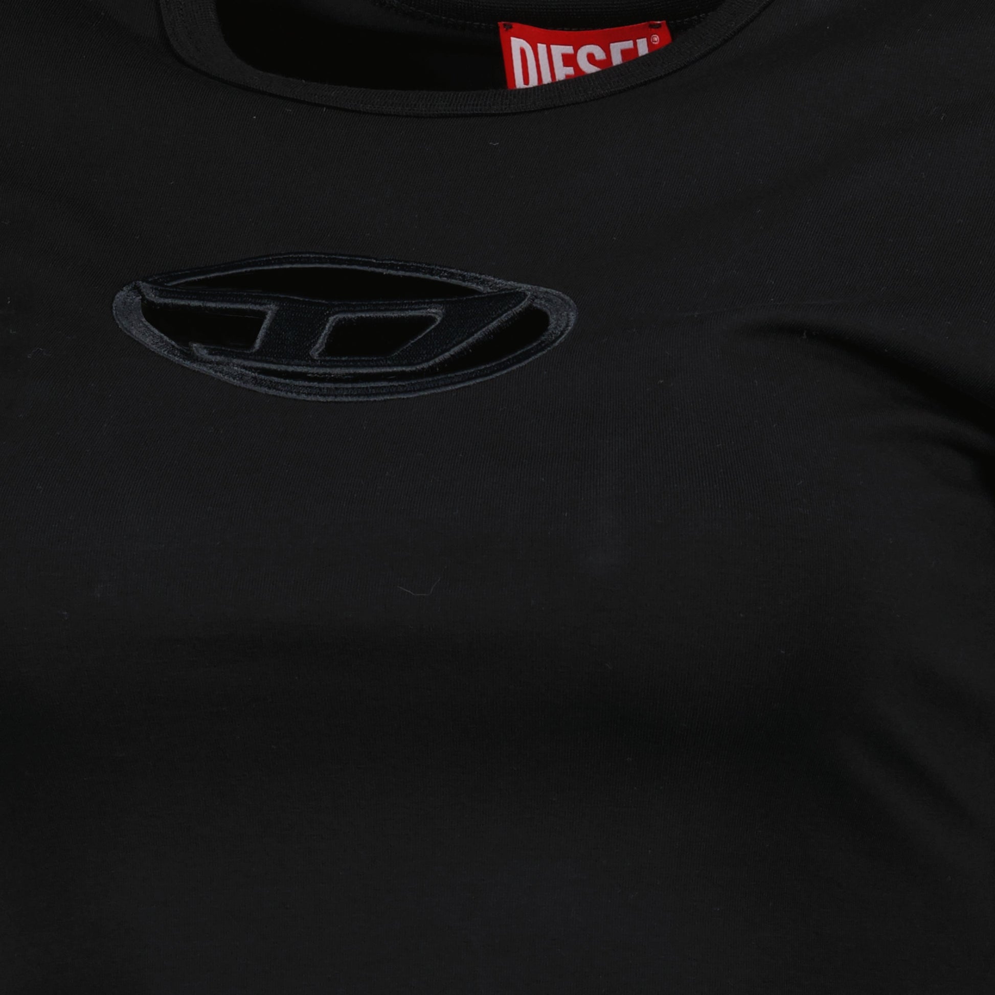 The black D-Angiel dress from the brand Diesel is designed for women. It is part of the Spring-Summer 2025 collection and is made of cotton and elastane.