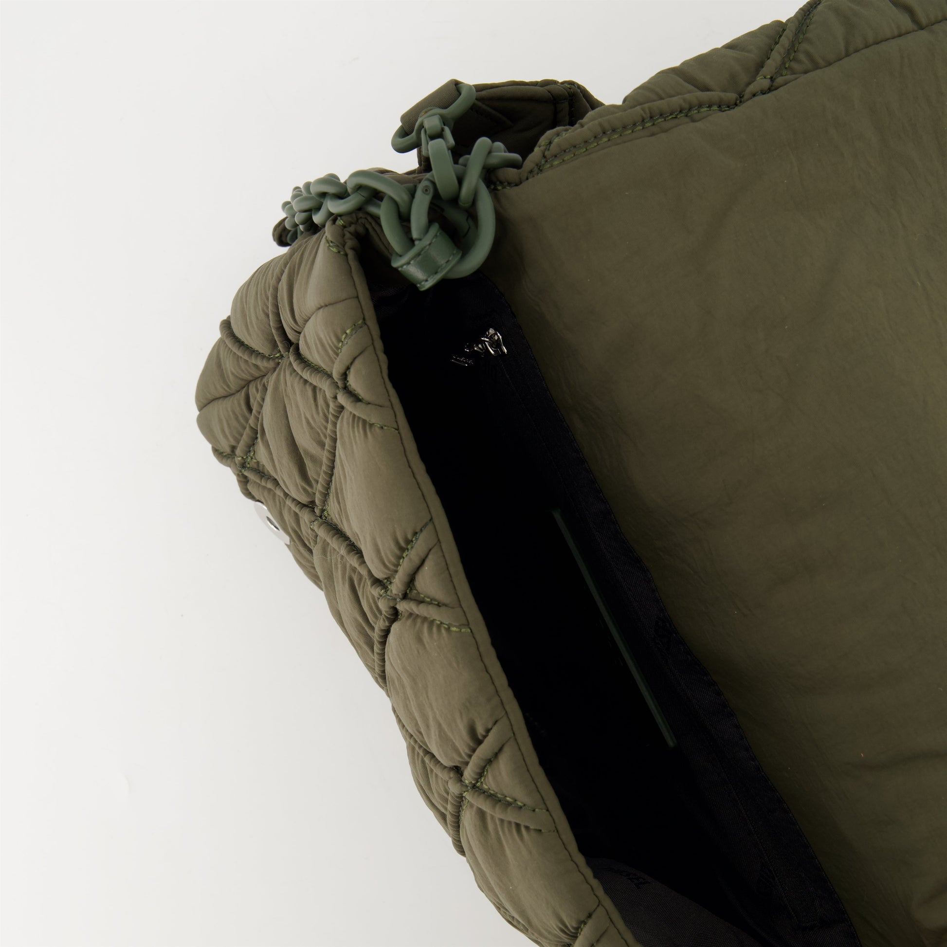 Charm-D quilted nylon bag in khaki green from the Diesel brand, designed for women. This model is part of the Spring-Summer 2025 collection.