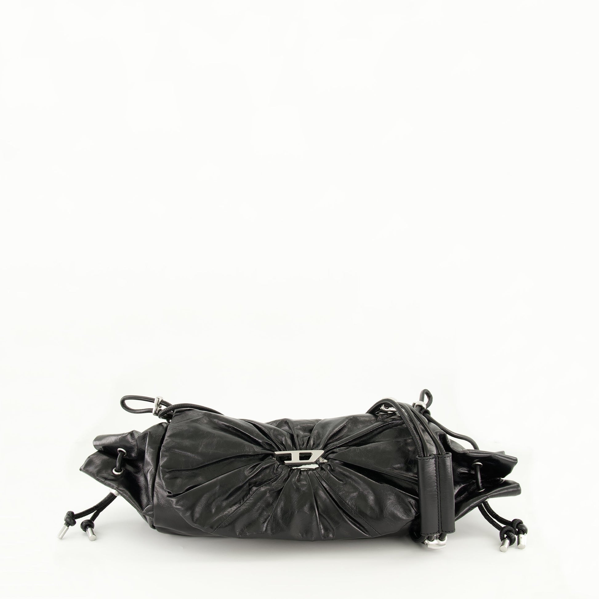 Scrunch-D leather bag from the Diesel Autumn-Winter 2024 collection for Women. Made of crumpled leather. Item Color: black. Adjustable shoulder strap.