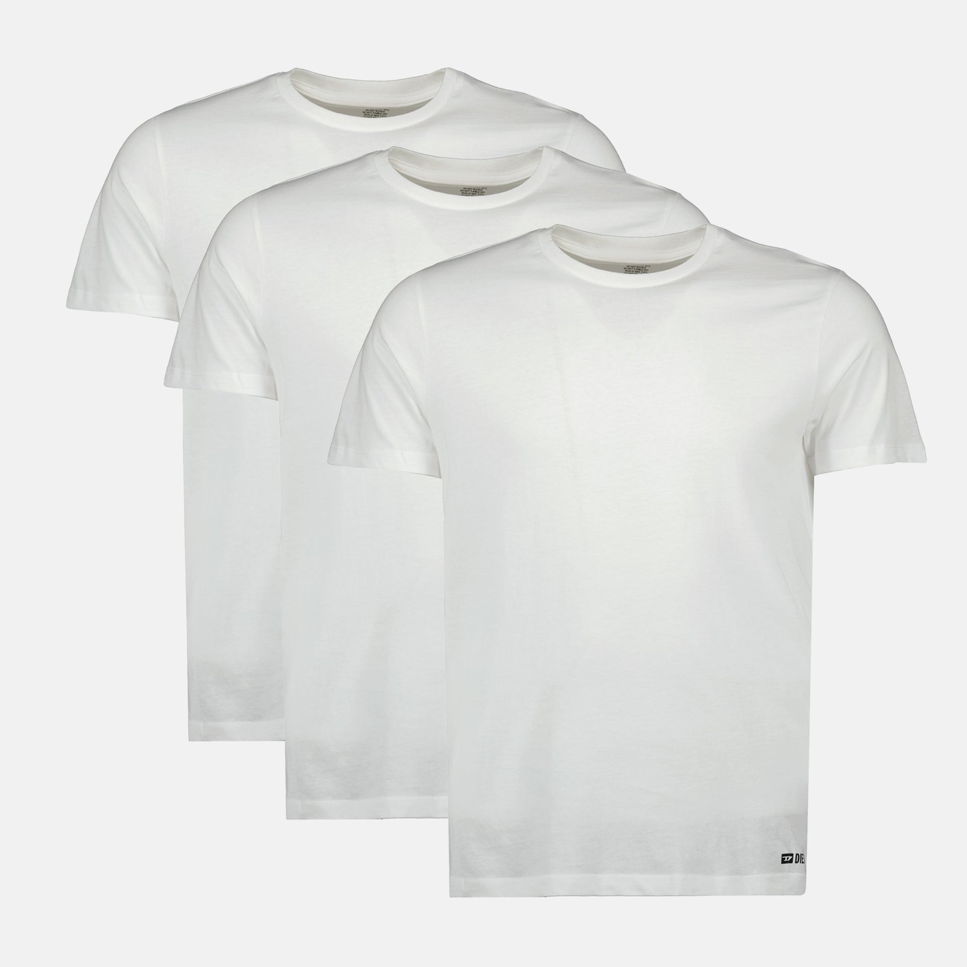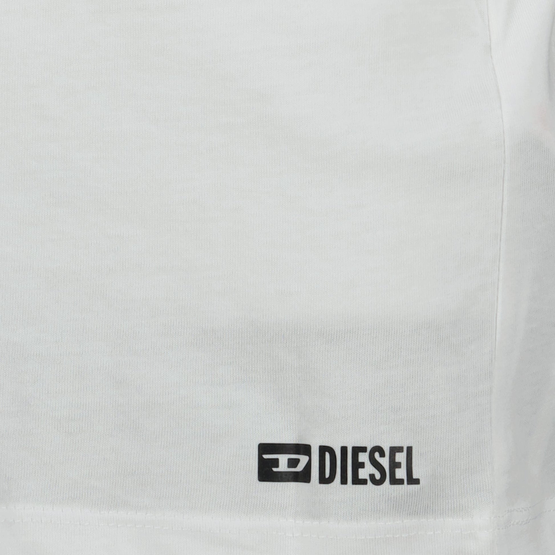 White Diesel T-shirt for men from the Autumn-Winter 2025 collection. It features a round neck, short sleeves, and a printed logo with a white tapestry FF pattern.