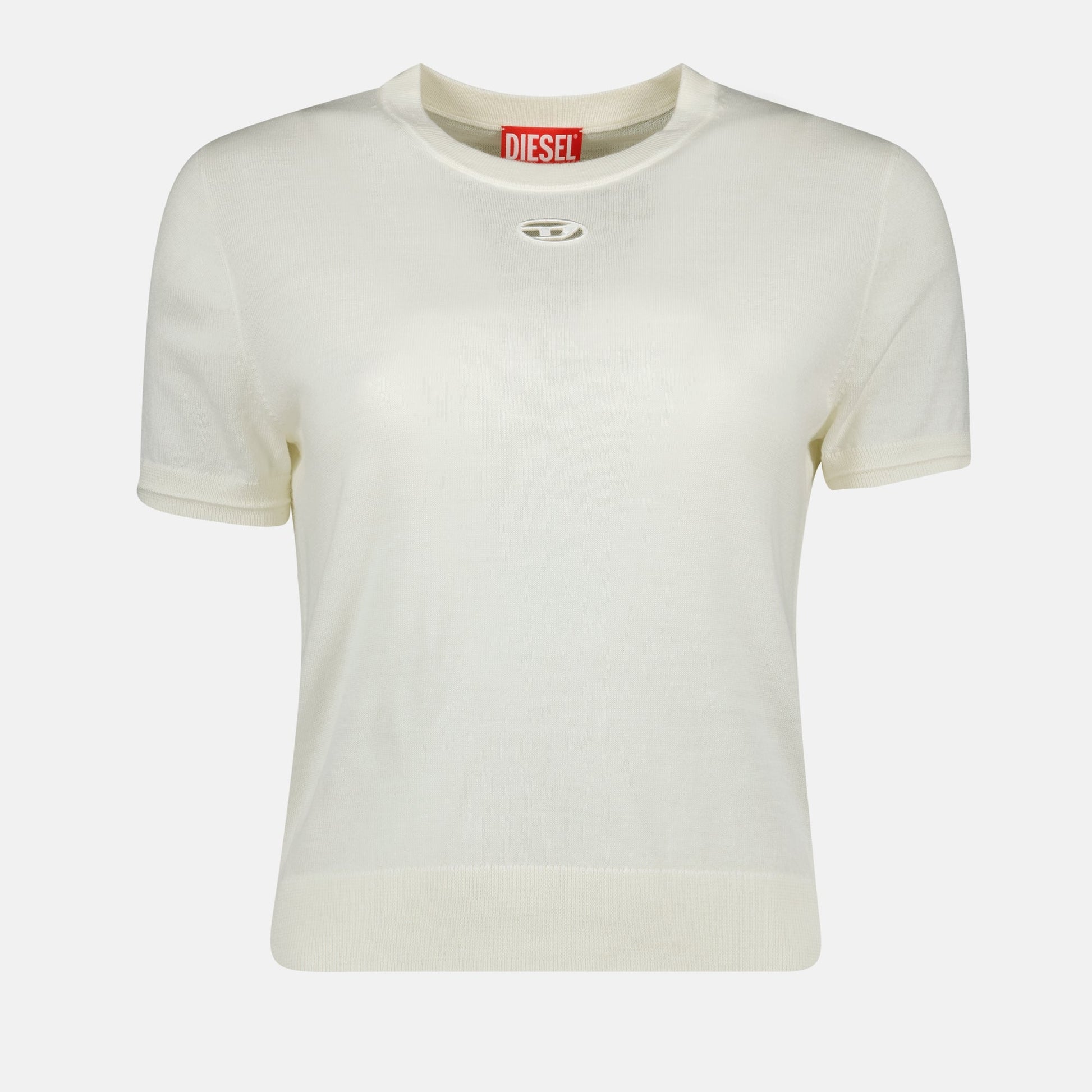 White short sleeve knit M-Aline from the brand Diesel, made of wool, is designed for women. This model is part of the Spring-Summer 2025 collection.
