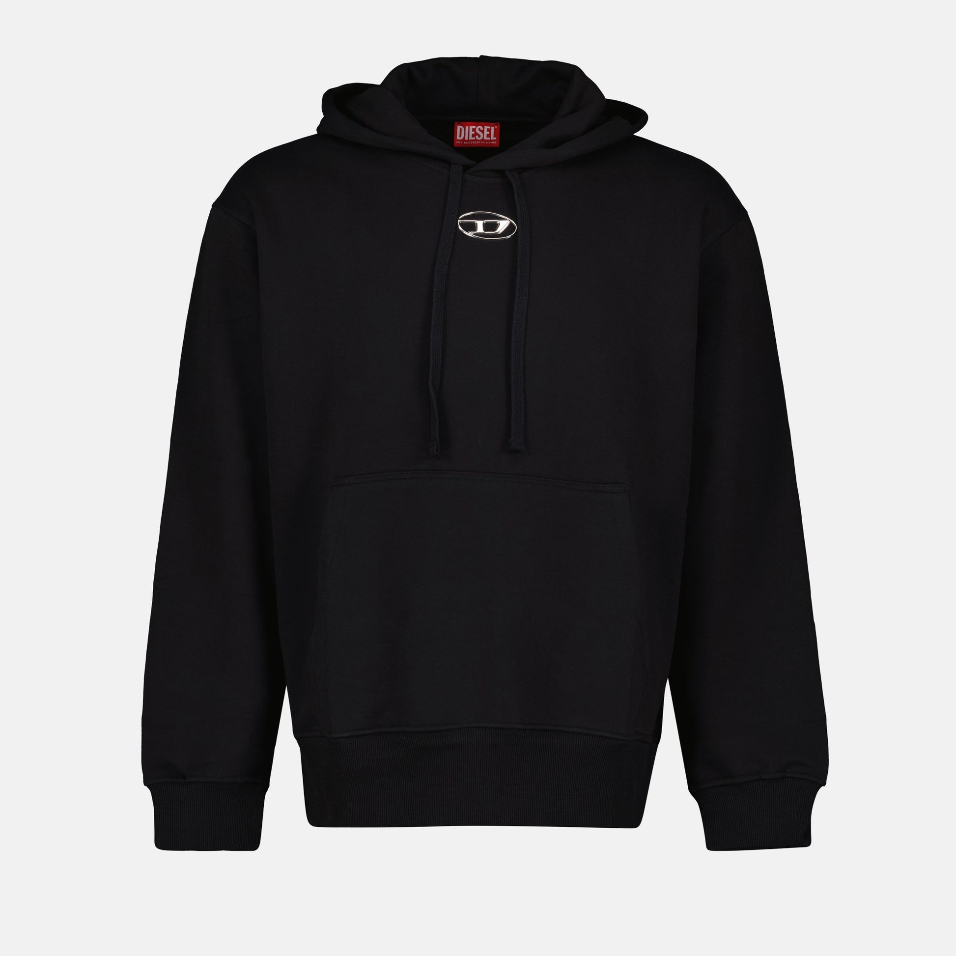 S-Macs hoodie from the Diesel collection Autumn-Winter 2024 for men. Made from cotton jersey. Item Color: black. Round neck and long sleeves.