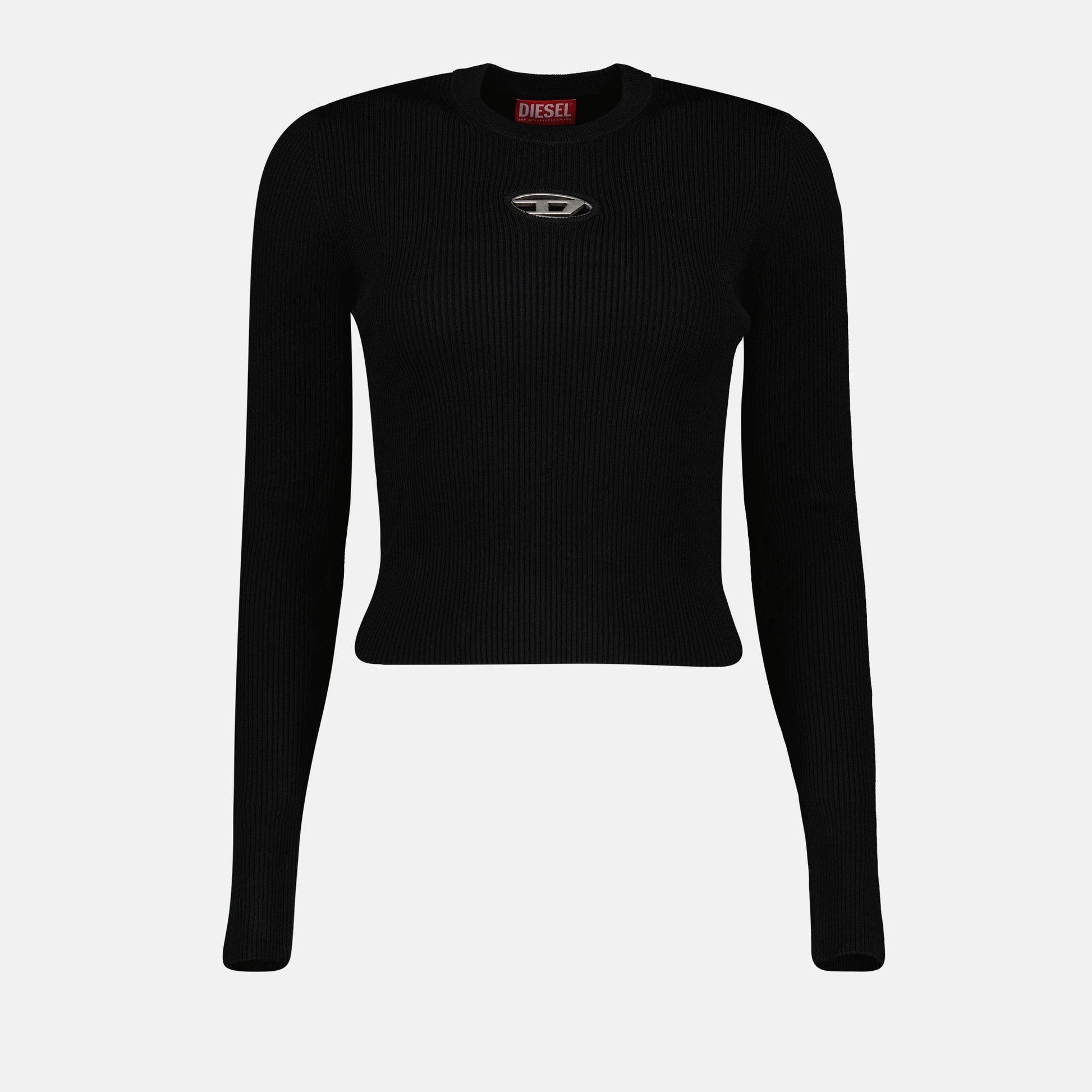 M-Valari Sweater from Diesel collection Autumn-Winter 2024 for Women. Made of ribbed viscose. Item in Black. Crew neck and removable long sleeves. This item is available in several variations.
