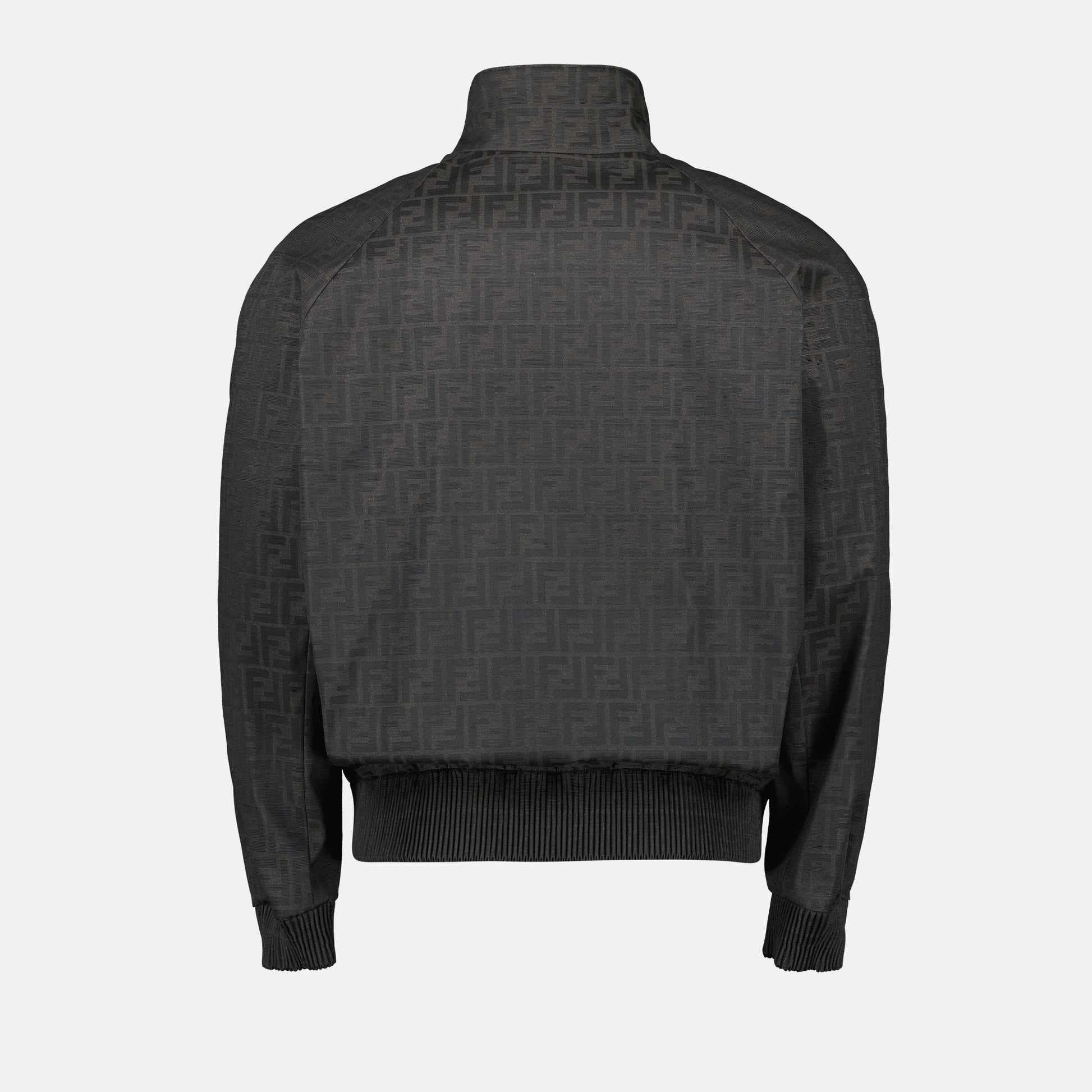 FF Jacket from the Fendi Autumn-Winter 2024 collection for Men. Made of nylon. Item color taupe gray. Buttoned collar and long sleeves.