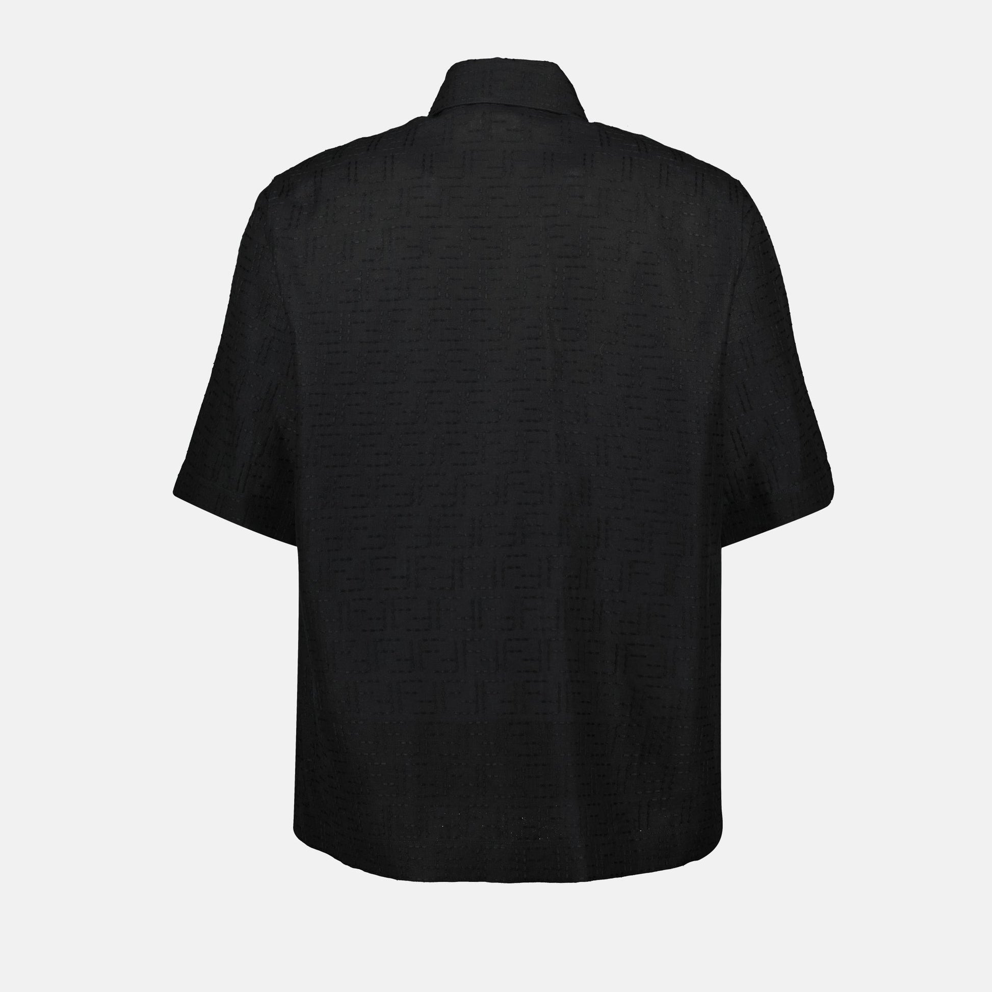 Black FF linen shirt by Fendi for men. This piece is part of the Spring-Summer 2025 collection and stands out for its classic collar and short sleeves.