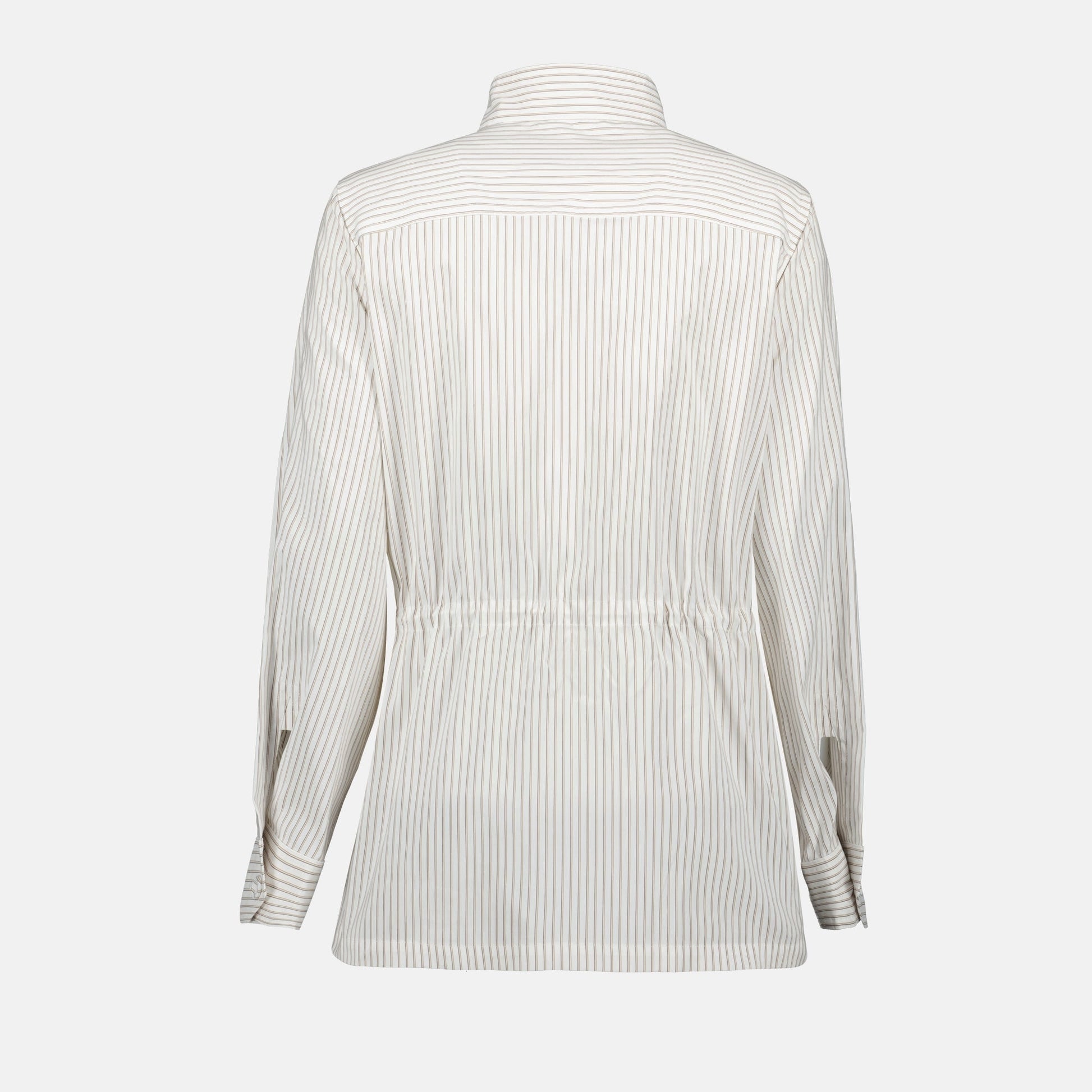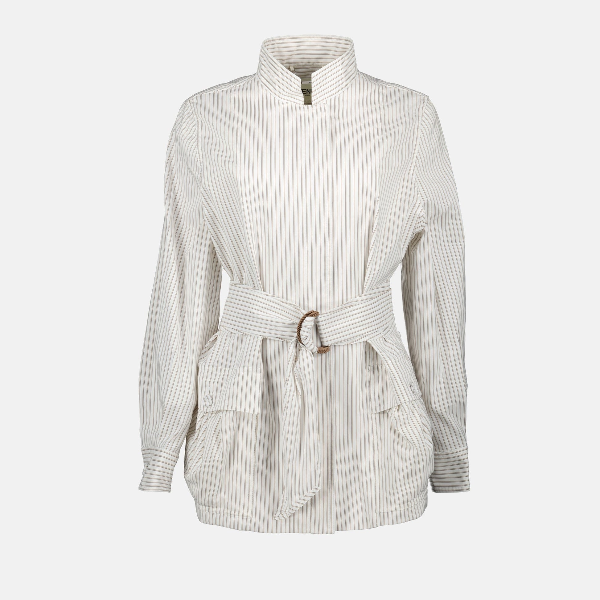 Fitted white striped jacket by Fendi for women, made of cotton and silk. This piece is part of the Spring-Summer 2025 collection and features a high collar and elegant details.