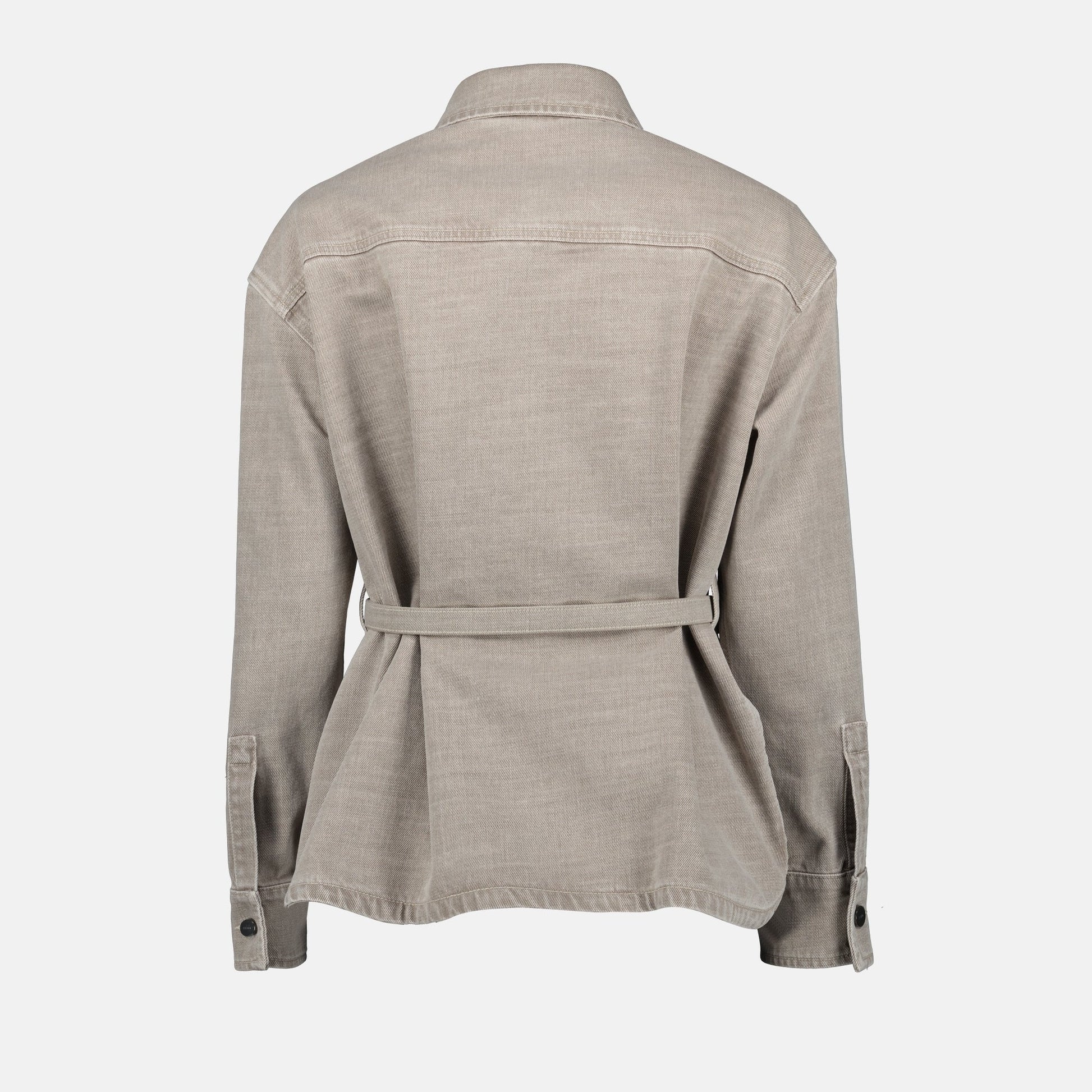 Go-To jacket in gray denim from Fendi for women, from the Spring-Summer 2025 collection. It features a classic collar, a fitted cut, and a raised Fendi Stamp 1925 patch.
