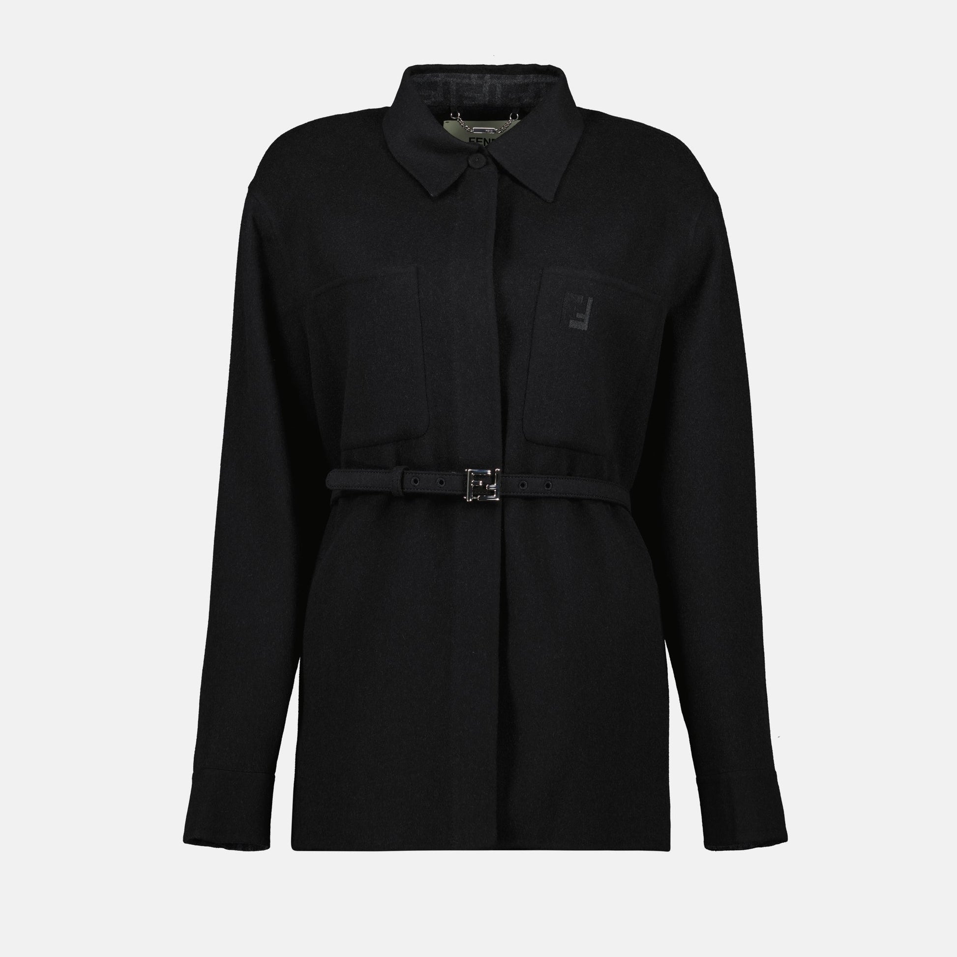 Go-To Wool Jacket Fendi Autumn-Winter 2024 Collection for Women. Made of wool. Item Color: black. Classic collar and Long sleeves.