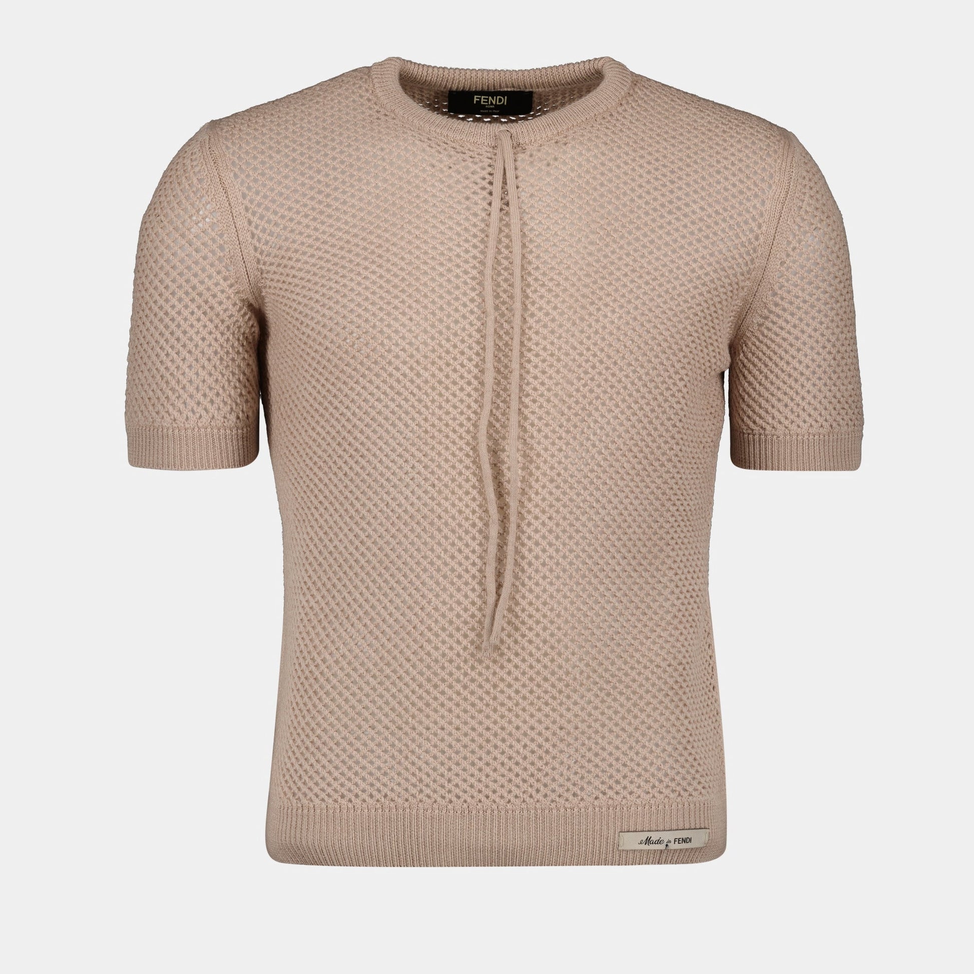 Mesh sweater from the Fendi Spring-Summer 2024 collection for men. Made of cotton. Item in Beige. Round neck and short sleeves.