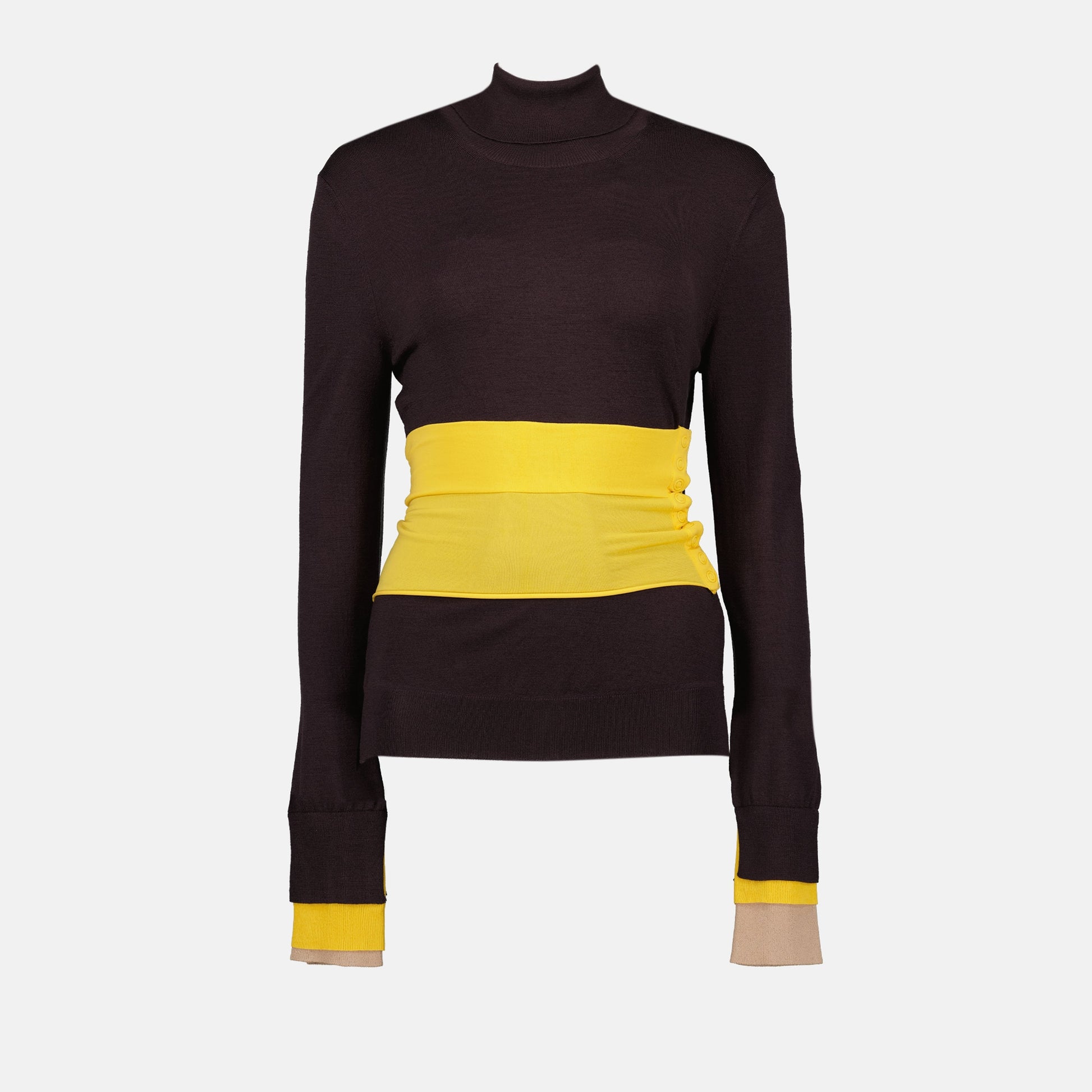 Wool dress from the Fendi collection Autumn-Winter 2024 for women. Made of ribbed wool. Item Color: dark purple. Turtleneck and long sleeves.