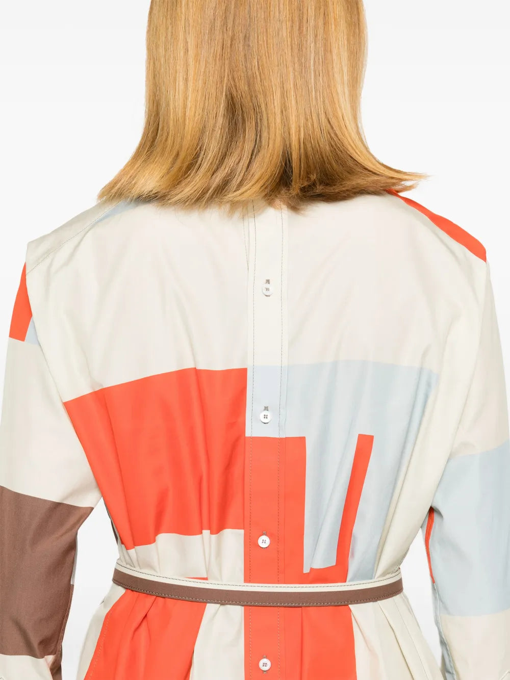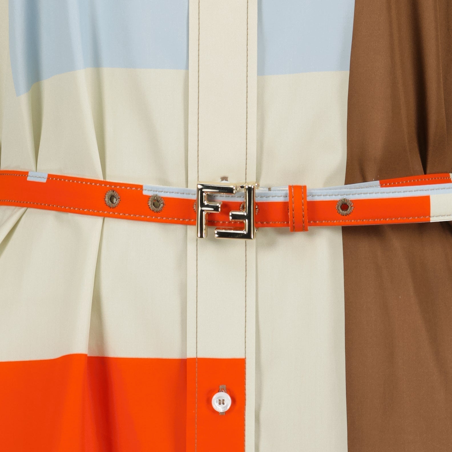 Multicolored Puzzle Print Dress from the Fendi Spring-Summer 2024 collection for Women. Made from poplin. Multicolored item. Officer collar and long sleeves.