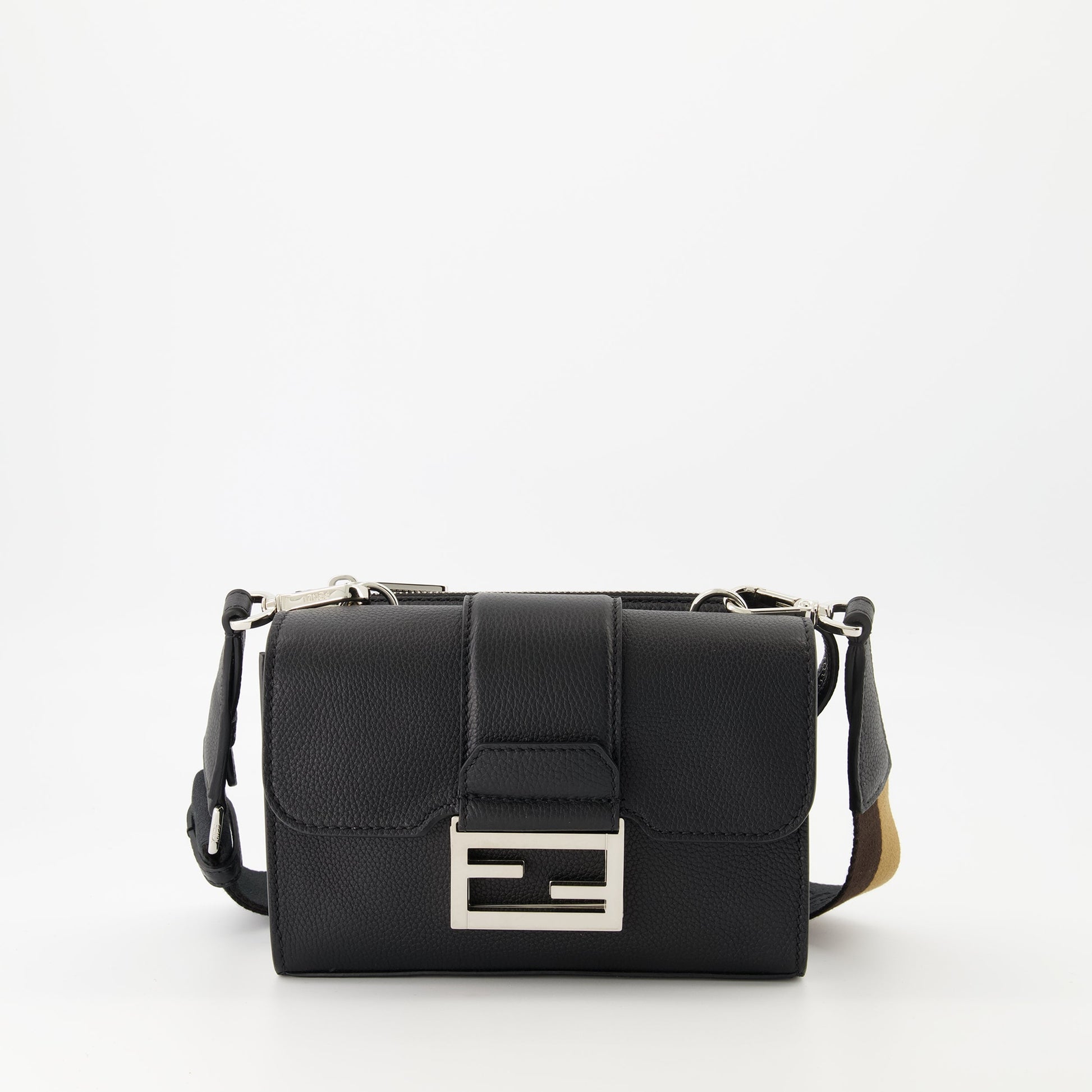The black Double Baguette Bag from Fendi is an elegant accessory for men. Part of the Spring-Summer 2025 collection, it combines modern style with practical functionality.