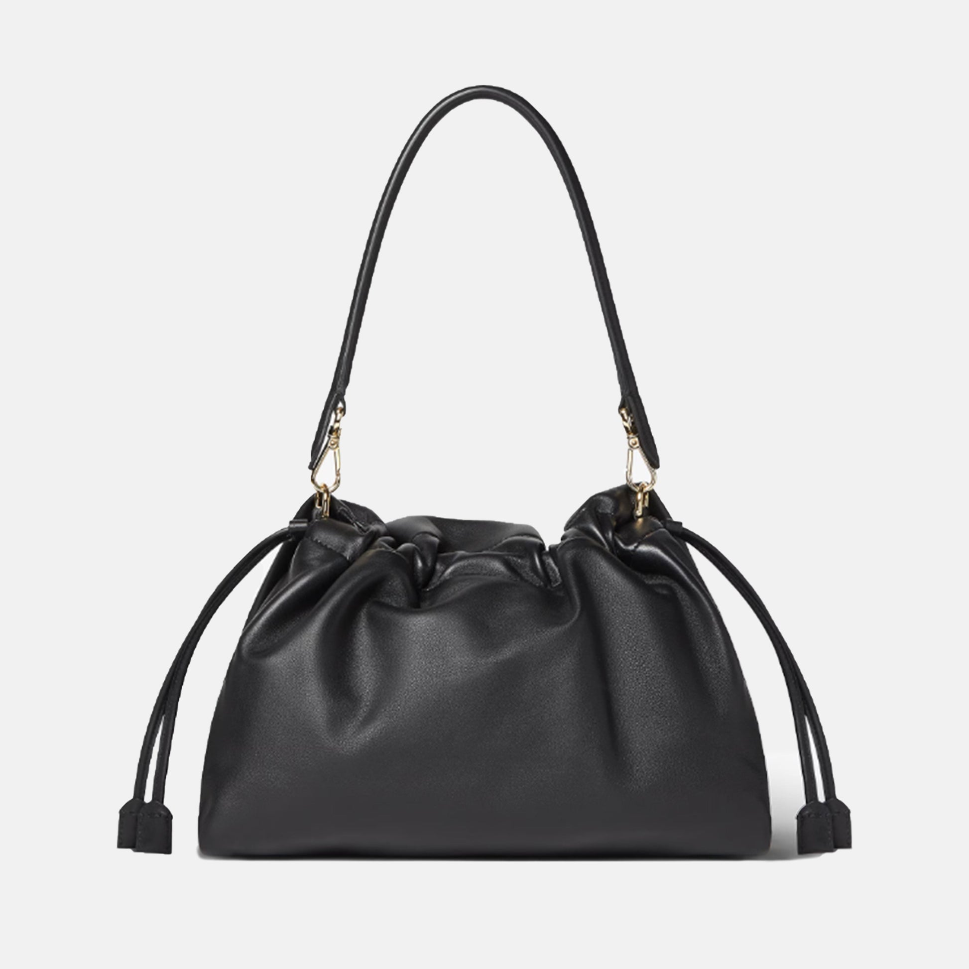 Mamma Baguette bag in black from Fendi for women, made of nappa leather with a suede leather interior. This model is part of the Spring-Summer 2025 collection and features golden metal trims.