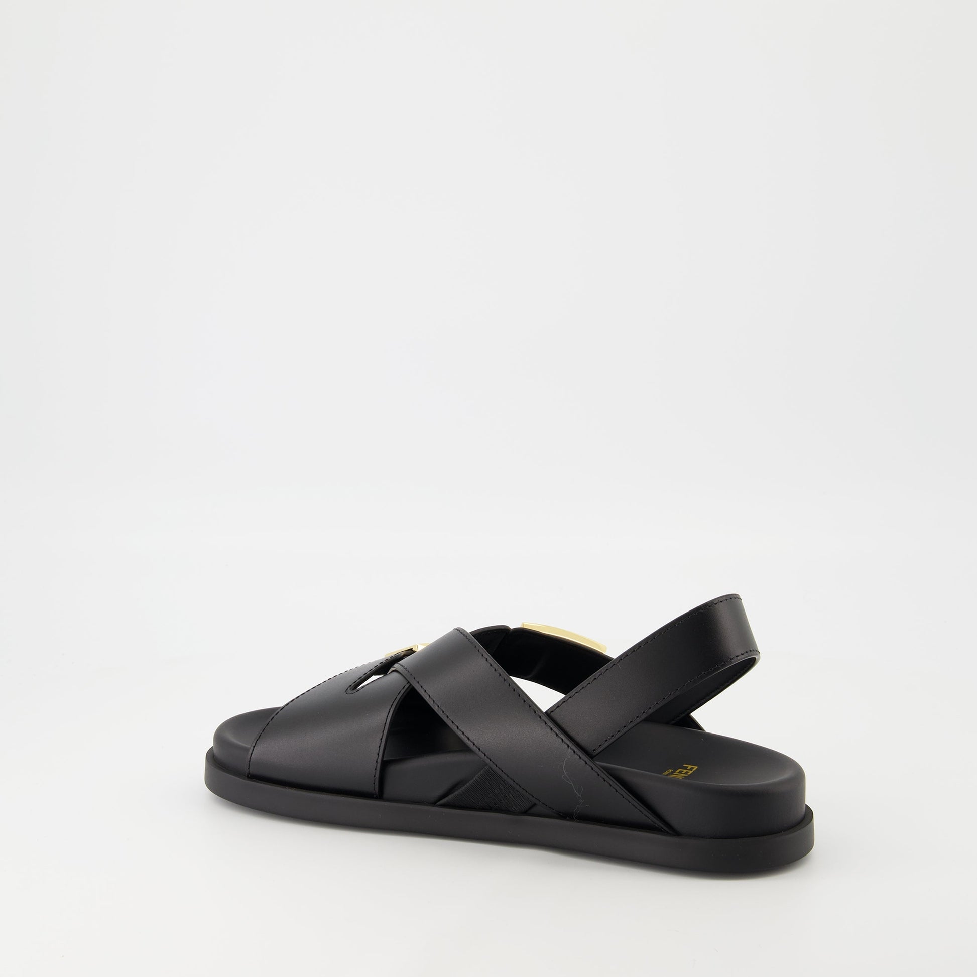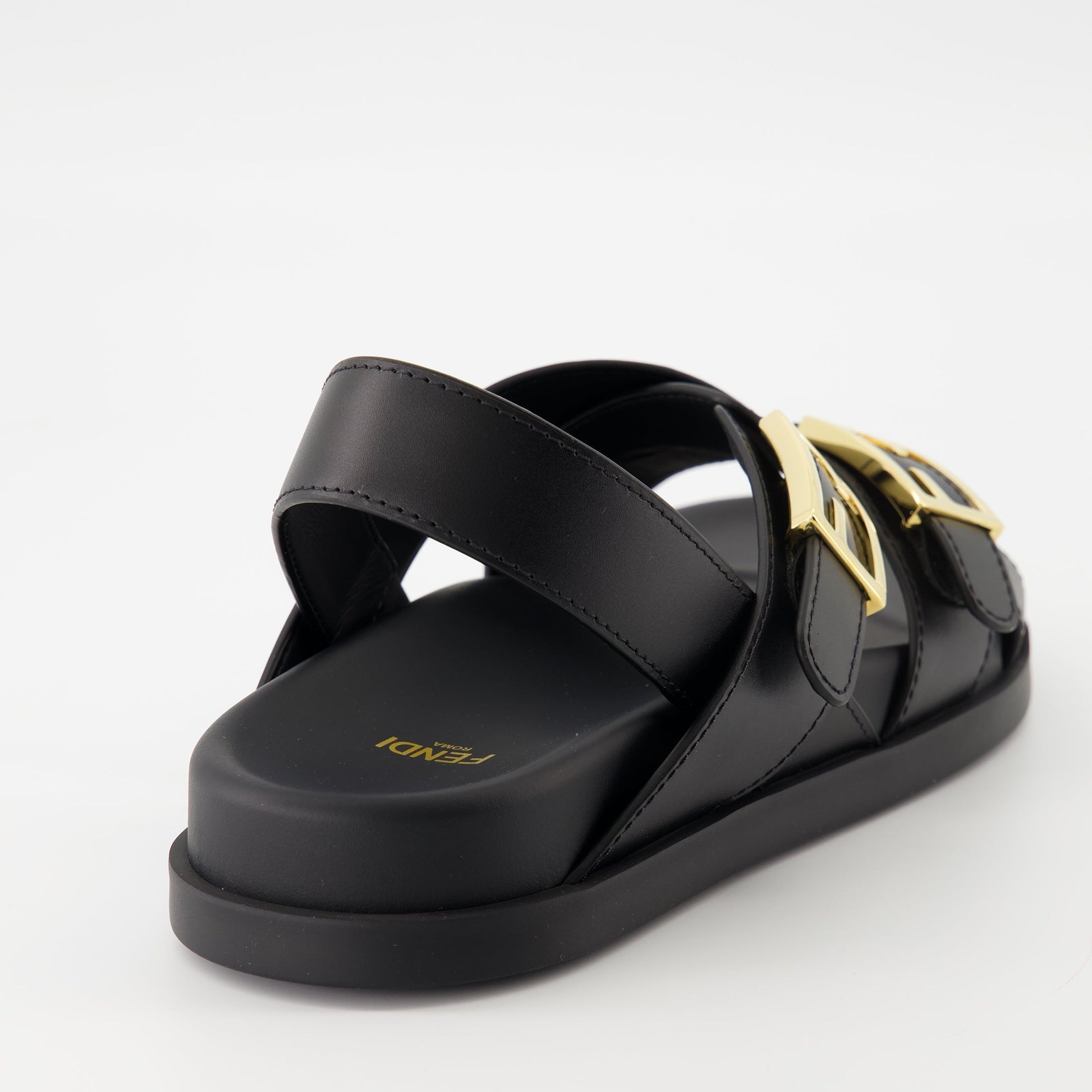 The black Fendi Feel sandals are crafted from smooth calfskin. Designed for women, they belong to the Spring-Summer 2025 collection with refined and elegant details.