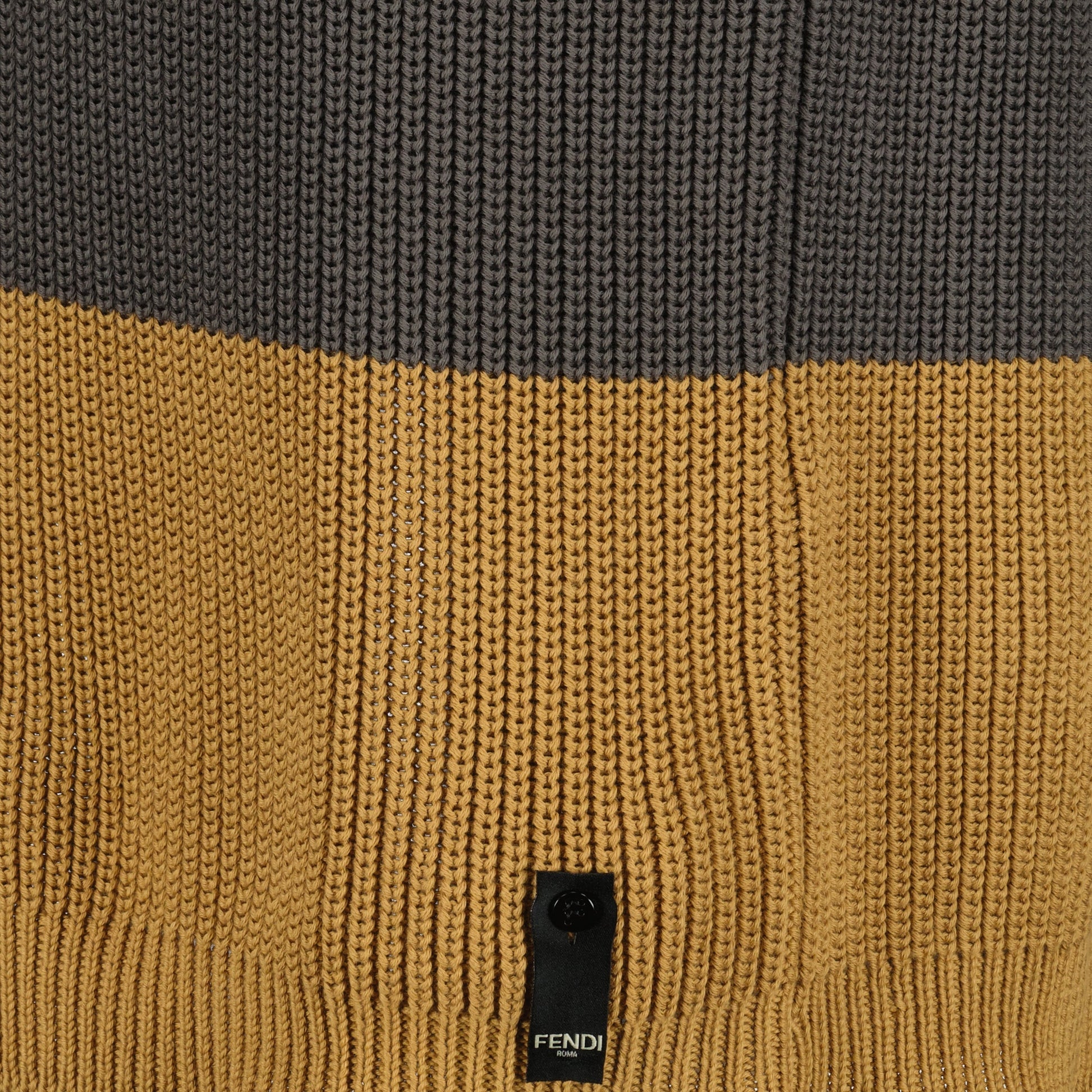 Yellow and brown sleeveless polo from Fendi for men. This model is part of the Spring-Summer 2025 collection and stands out for its two-tone design and classic collar.