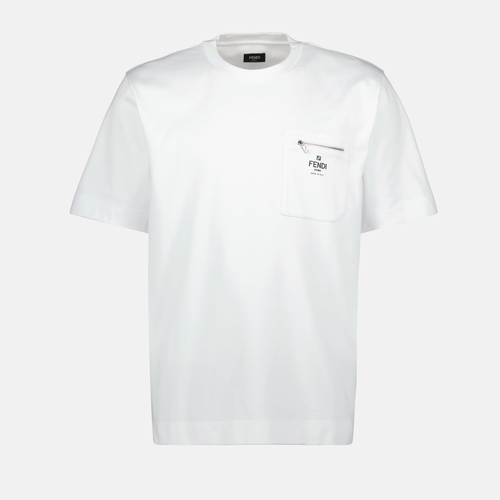 White cotton T-shirt from Fendi for men. This model is part of the Spring-Summer 2025 collection and features a round neck, short sleeves, and a straight fit.