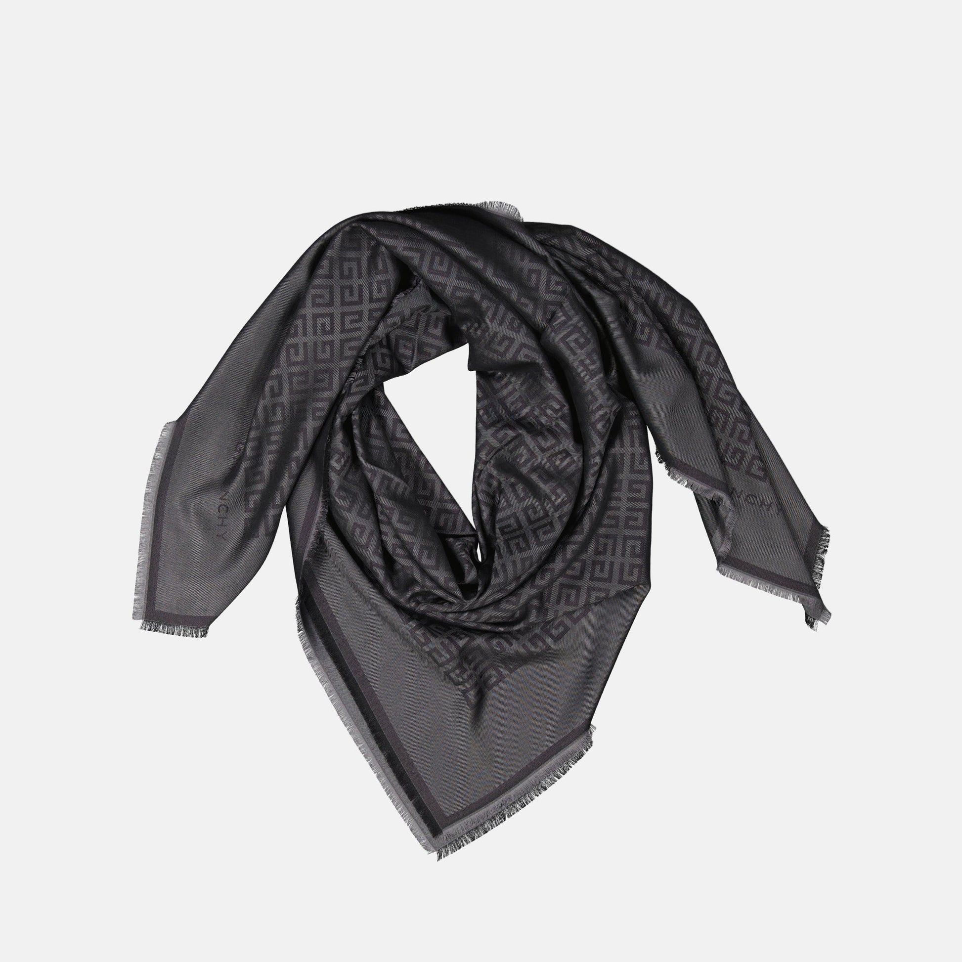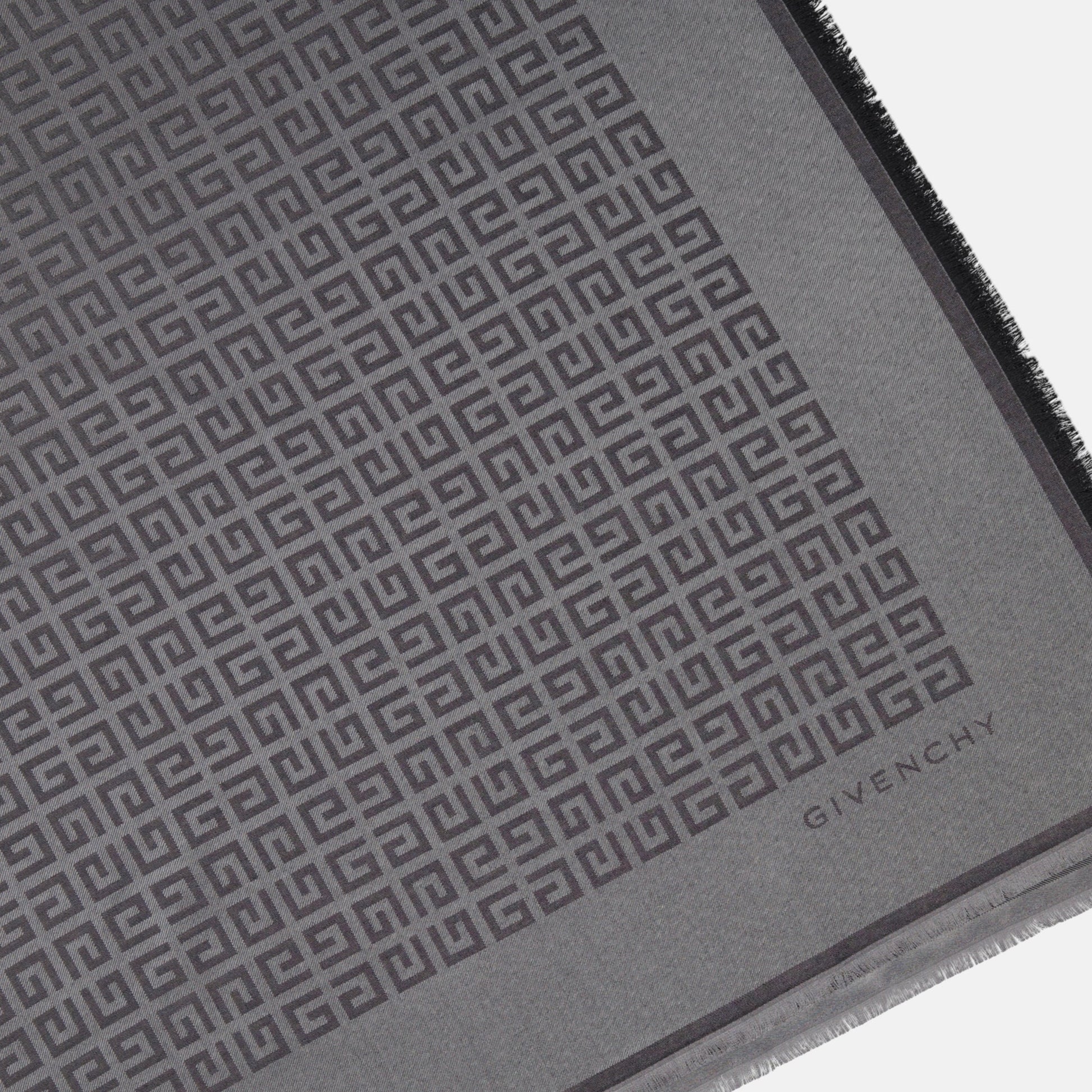 4G silk and wool shawl from Givenchy for women. This model is part of the Spring-Summer 2025 collection and features a tone-on-tone pattern with a shiny effect.