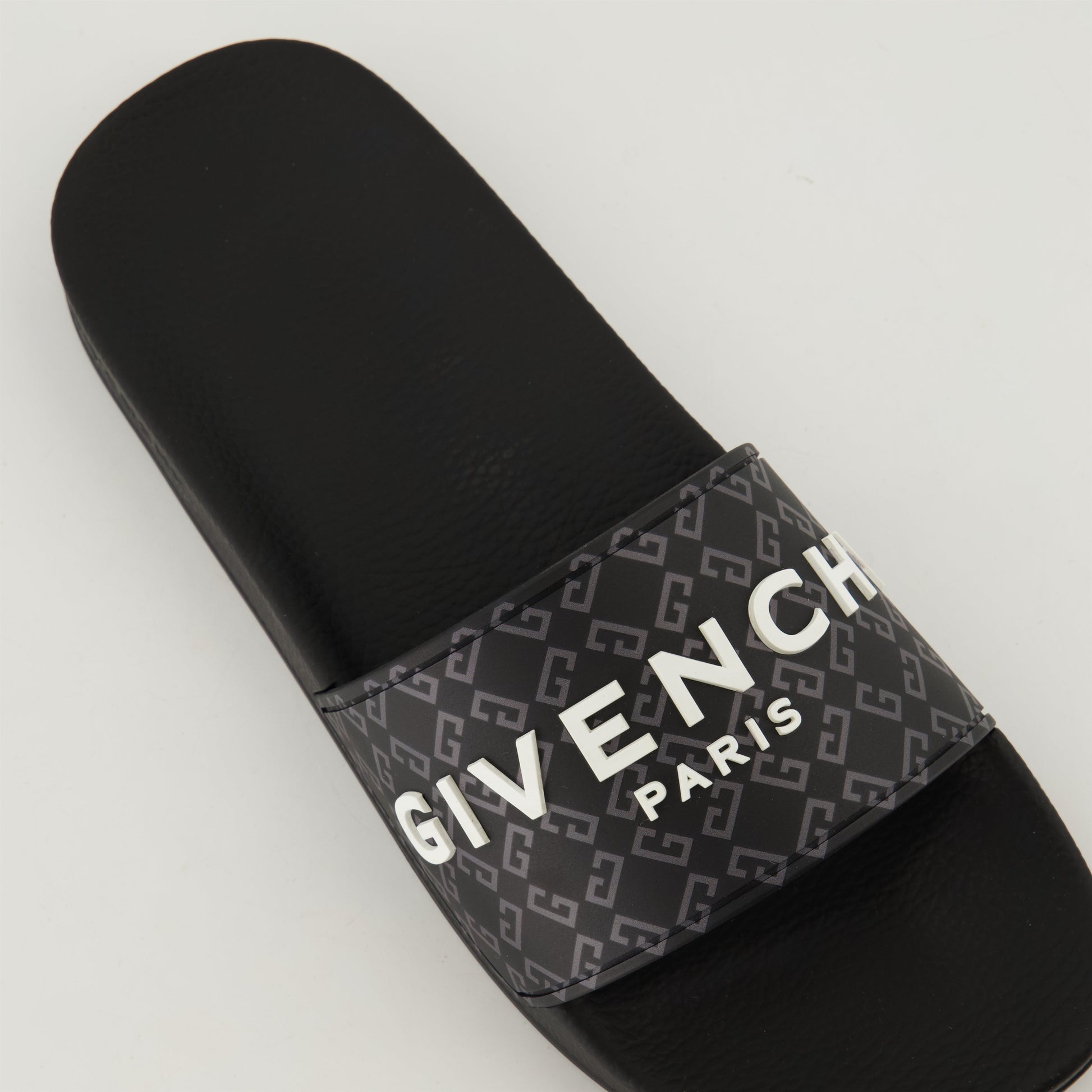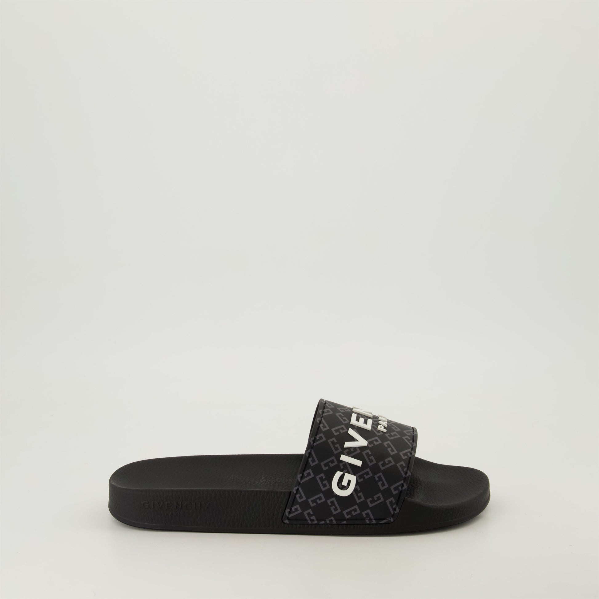 Black rubber slide sandals from Givenchy for men. This pair is part of the Spring-Summer 2025 collection, combining comfort and style with its modern design.