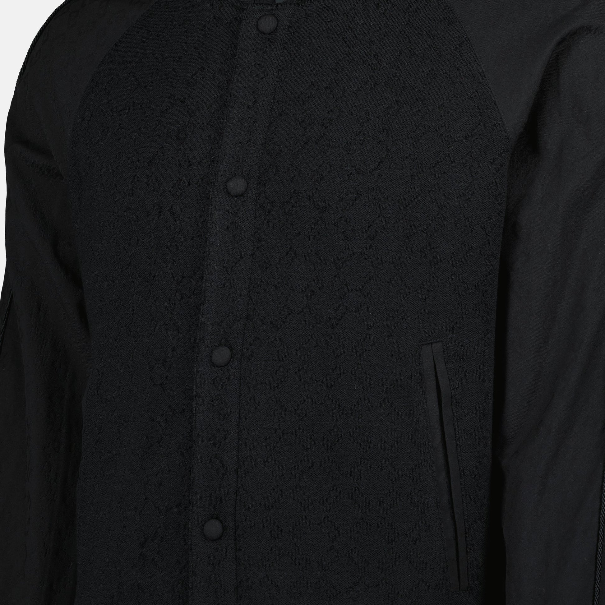 The black varsity jacket from Givenchy is a men's garment from the Spring-Summer 2025 collection. It is made of wool and viscose with a 72 monogram jacquard.