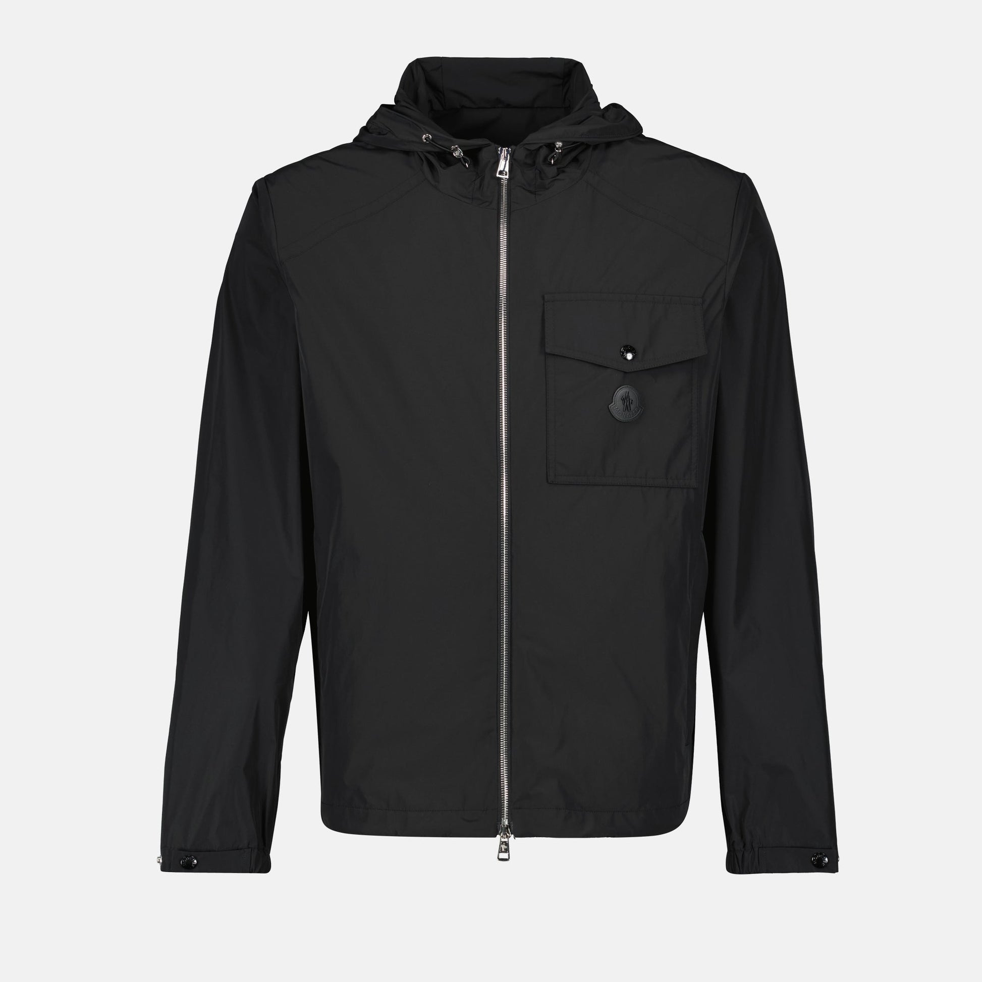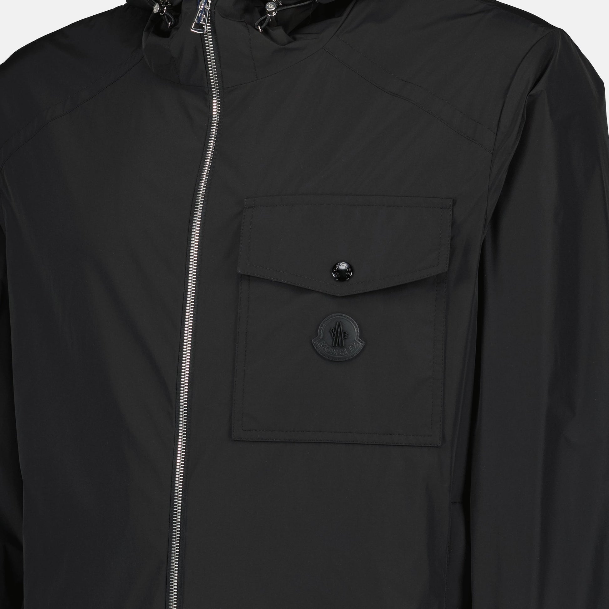 The black Fuyue windbreaker from Moncler is a men's garment from the Spring-Summer 2025 collection. It is made of leather and polyester, offering comfort and style with practical details.