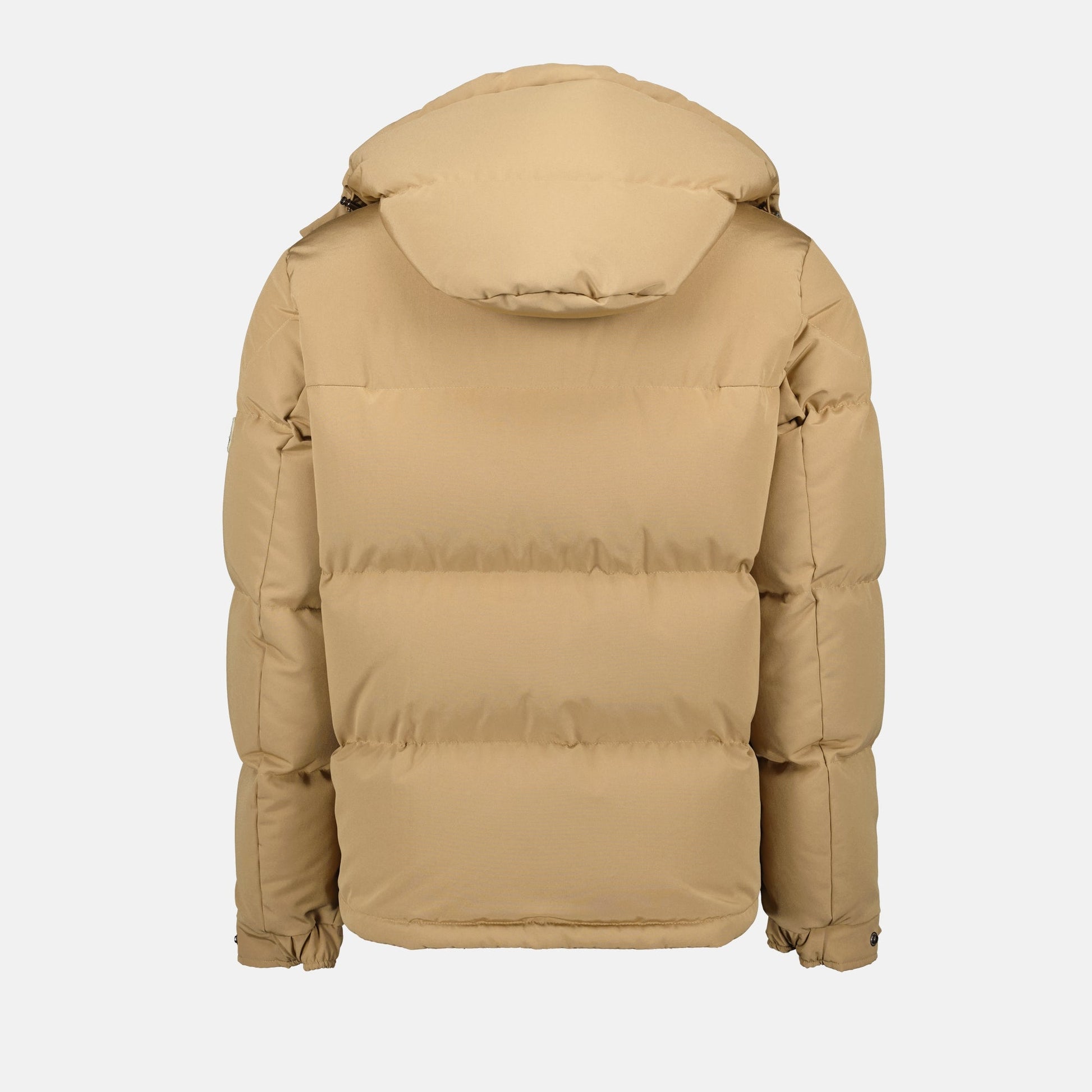Beige camel Fornas down jacket from the brand Moncler for men, Autumn-Winter 2024 collection. It features a high collar, long sleeves, and down padding for optimal comfort.