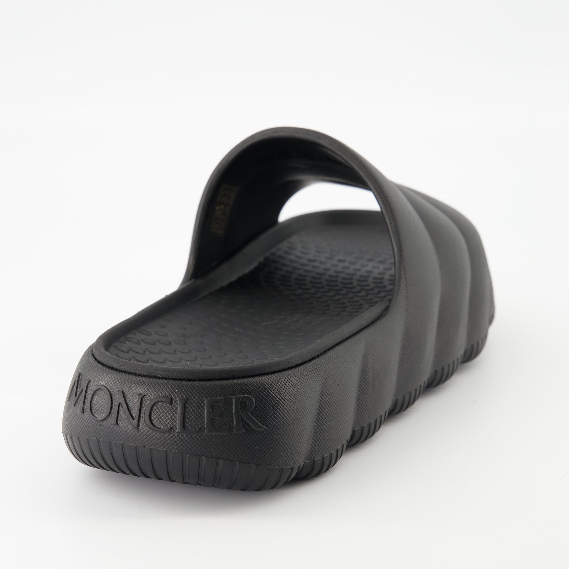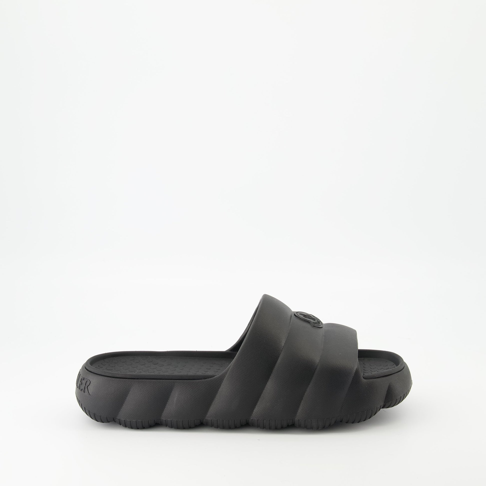 The black Lilo sliders from Moncler are an elegant accessory for men. They are part of the Spring-Summer 2025 collection and are made from elastodiene.