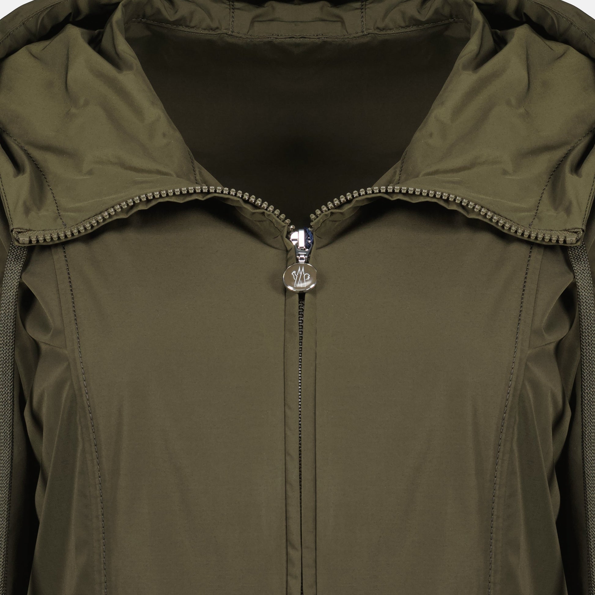 The khaki Leandro parka from the Moncler brand is a women's garment from the Spring-Summer 2025 collection. It is crafted from cotton and polyester with practical and elegant details.