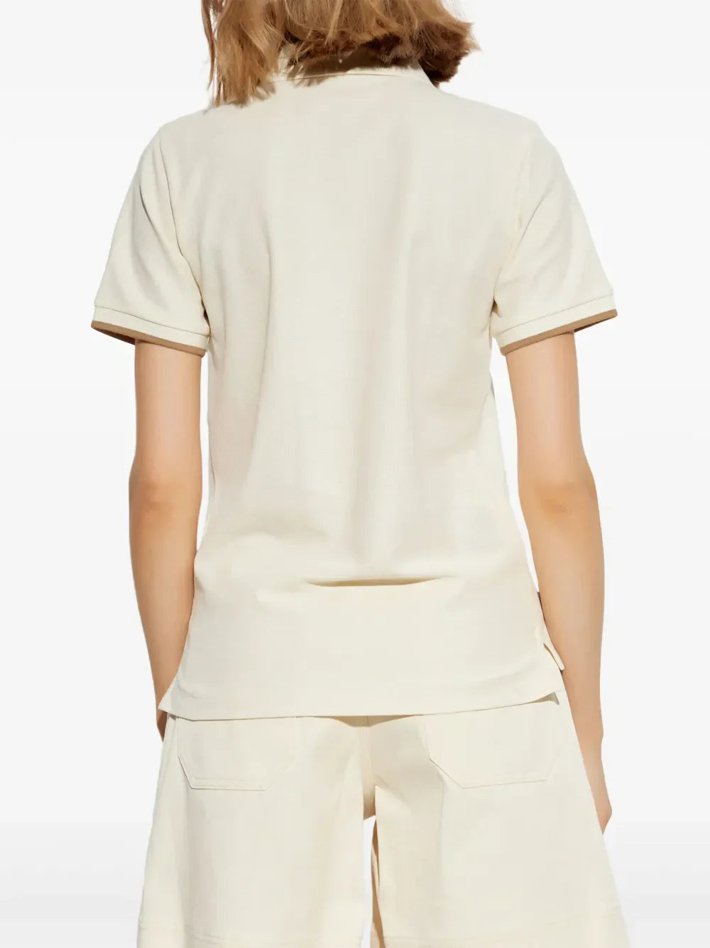 Off-white logo polo by Moncler for women, made from piqué cotton. This model is part of the Spring-Summer 2025 collection and features a fitted cut with contrasting details.