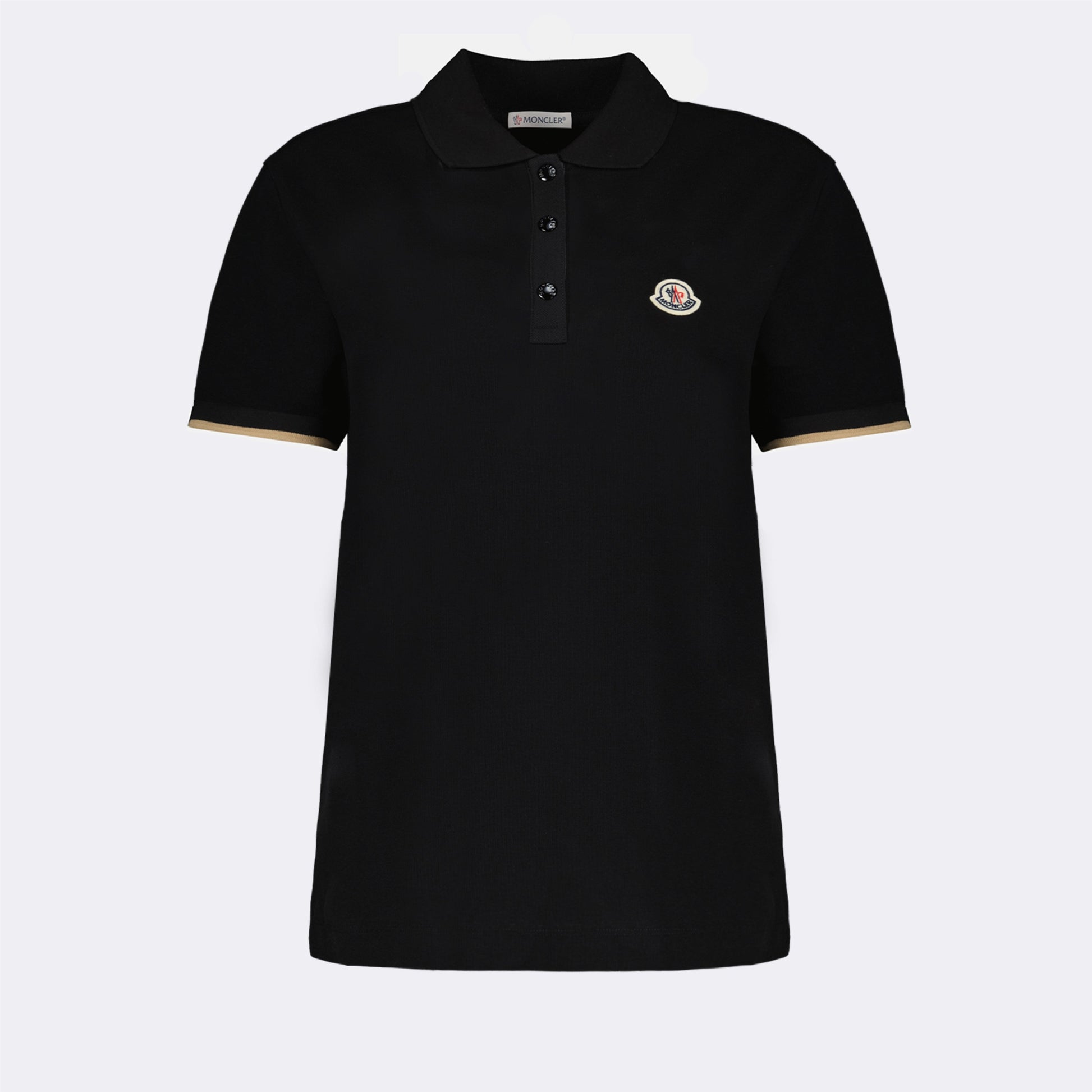 Black logo polo from Moncler for women, made of piqué cotton with a fitted silhouette and refined details. It is part of the Spring-Summer 2025 collection.