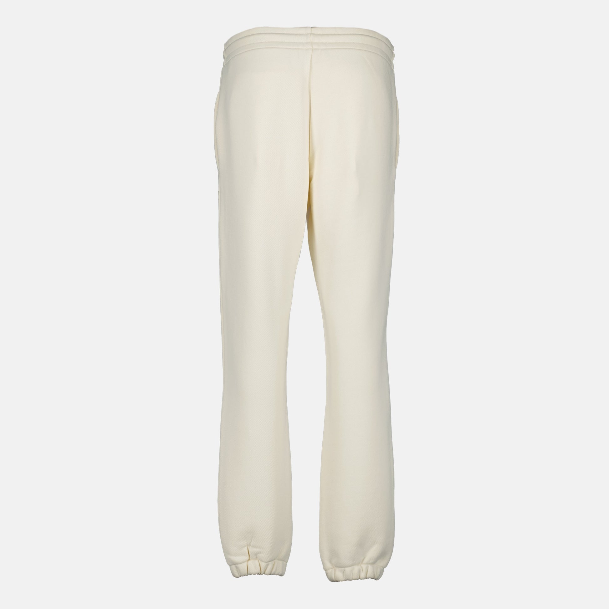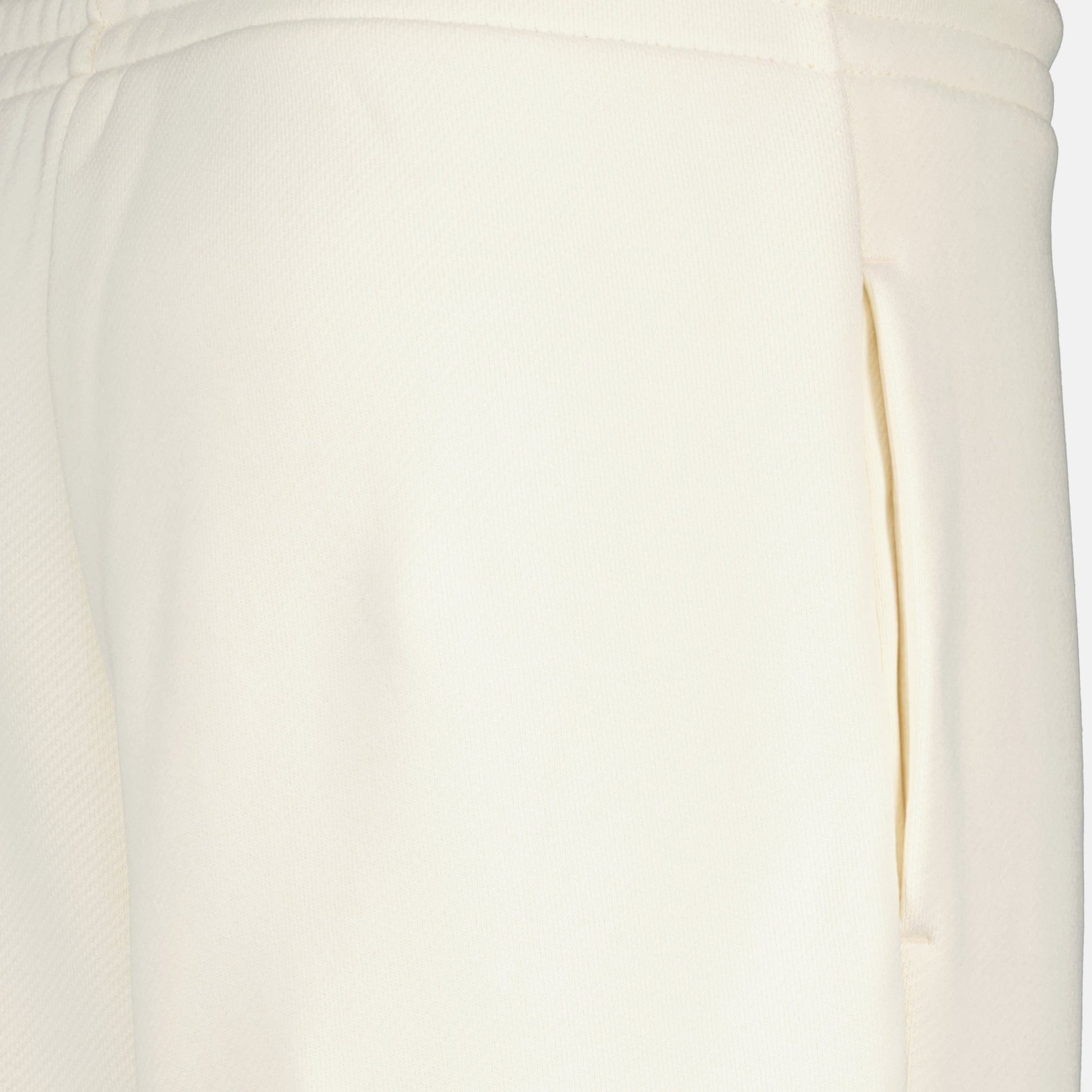 White sweatpants from the Moncler brand for women. This model is part of the Autumn-Winter 2025 collection and is made of cotton fleece.