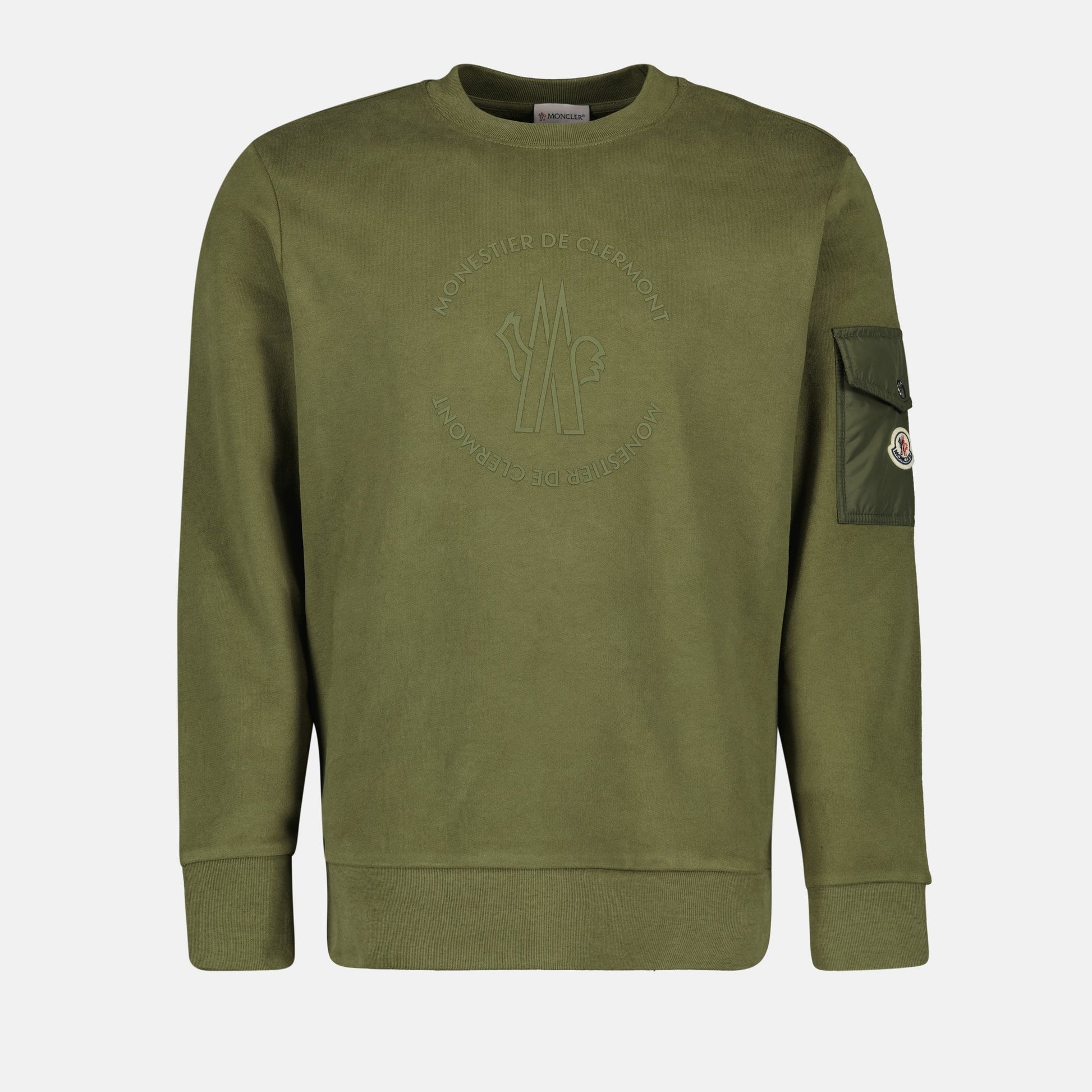 Green pocket sweatshirt from the brand Moncler, designed for men. Part of the Autumn-Winter 2024 collection, it combines comfort and style with its felt logo.