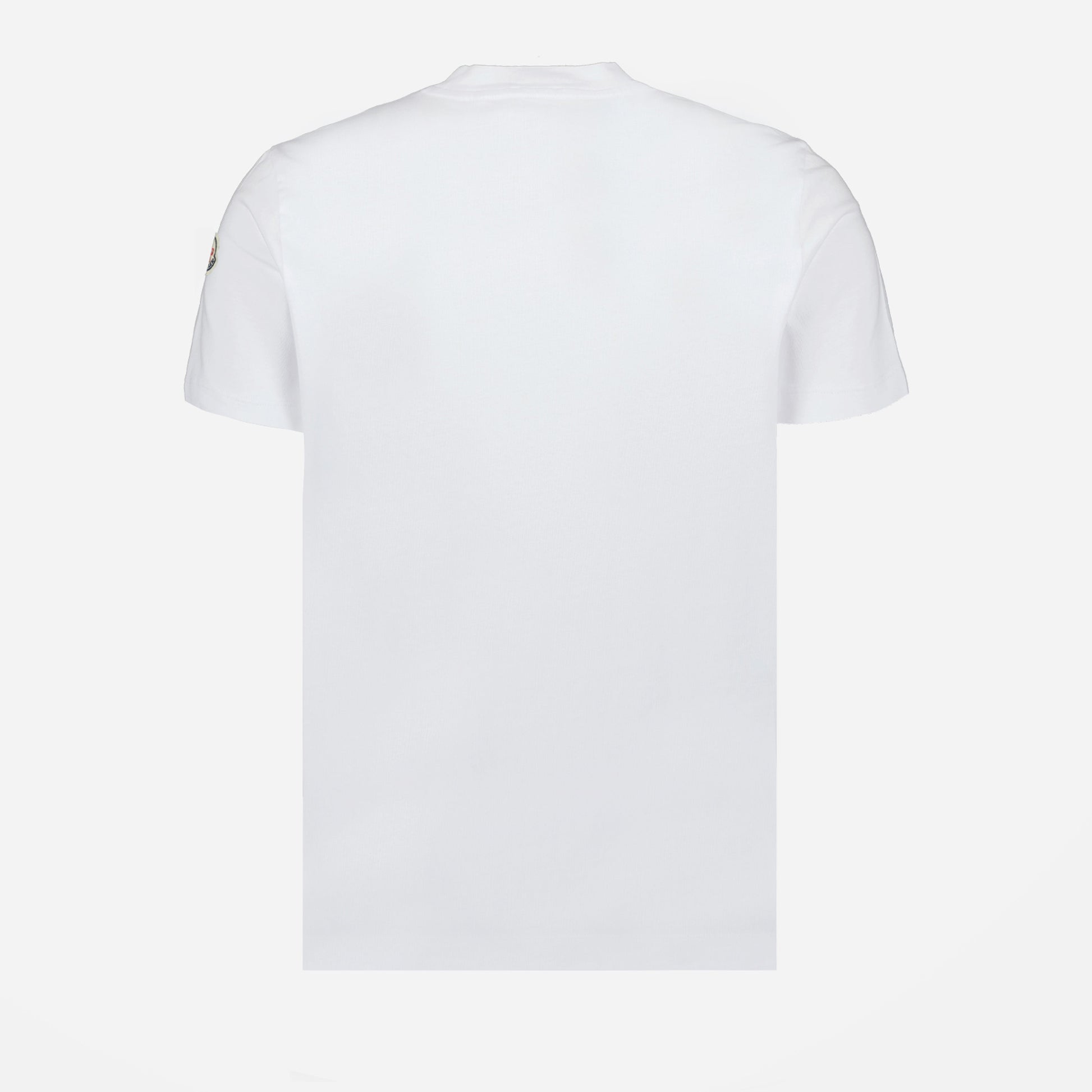 White double logo T-shirt from the Moncler brand for men. This model is part of the Spring-Summer 2025 collection and is made of piqué cotton with a round neck and short sleeves.
