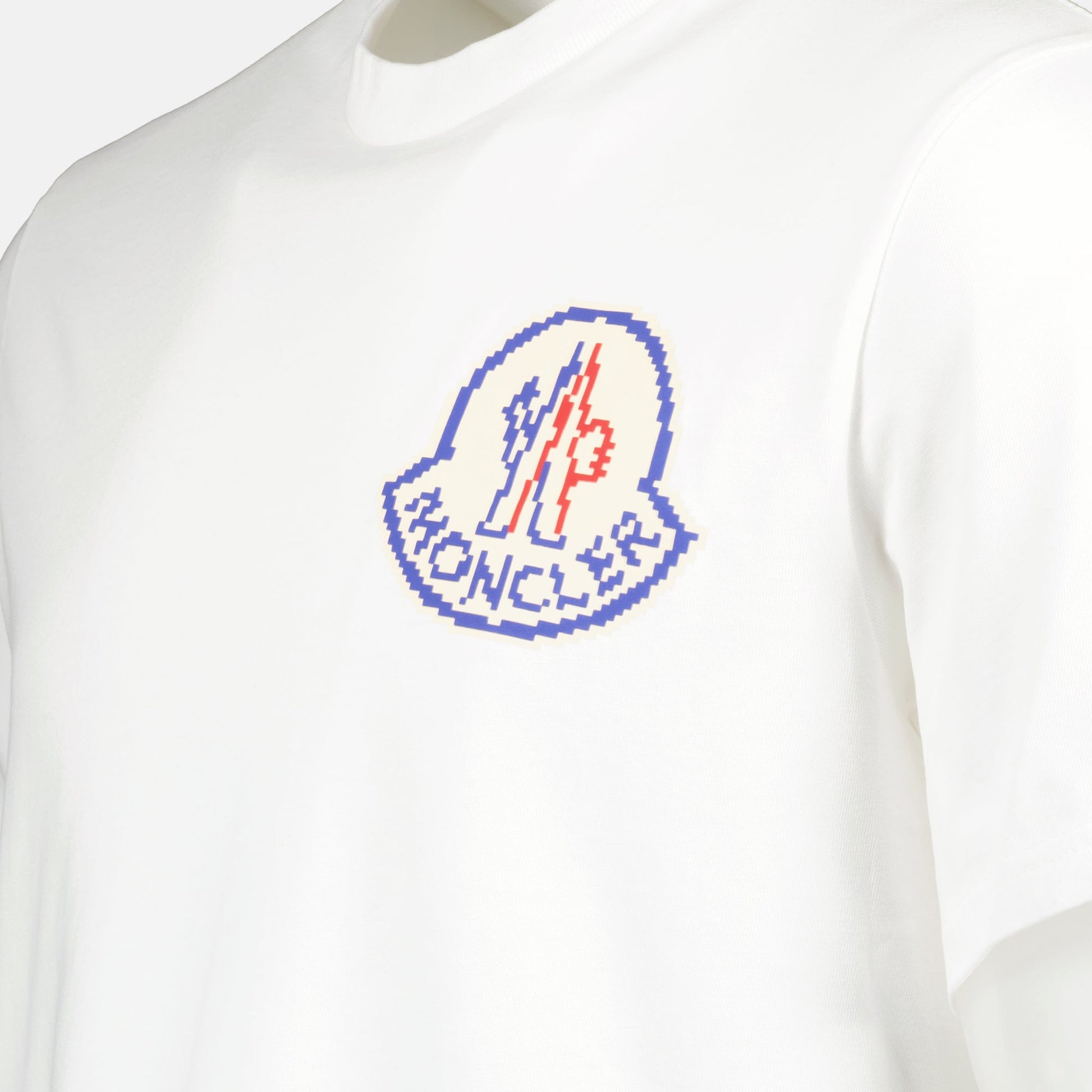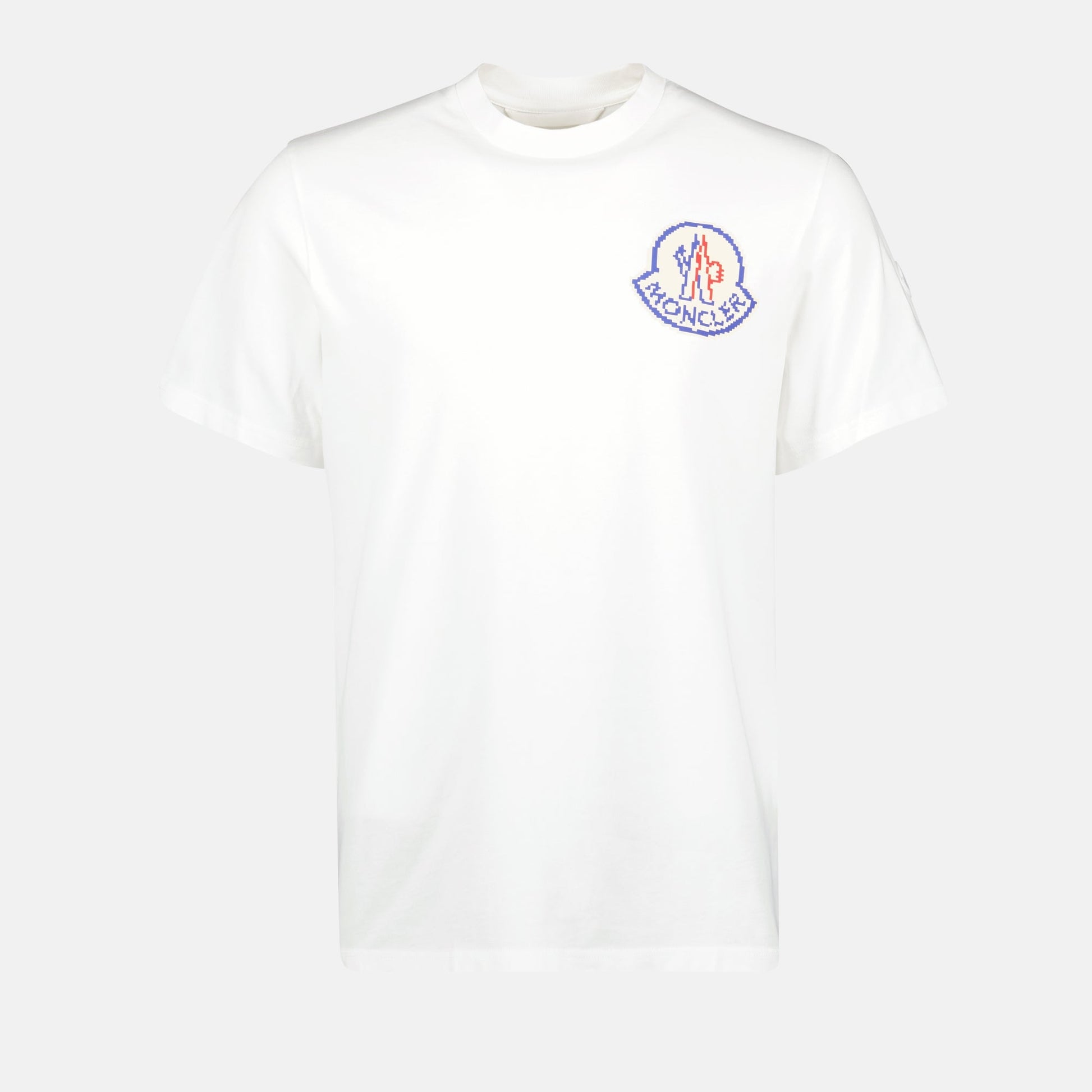 White logo T-shirt from the brand Moncler for men. This model is part of the Autumn-Winter 2024 collection and is made of cotton with a felt logo.
