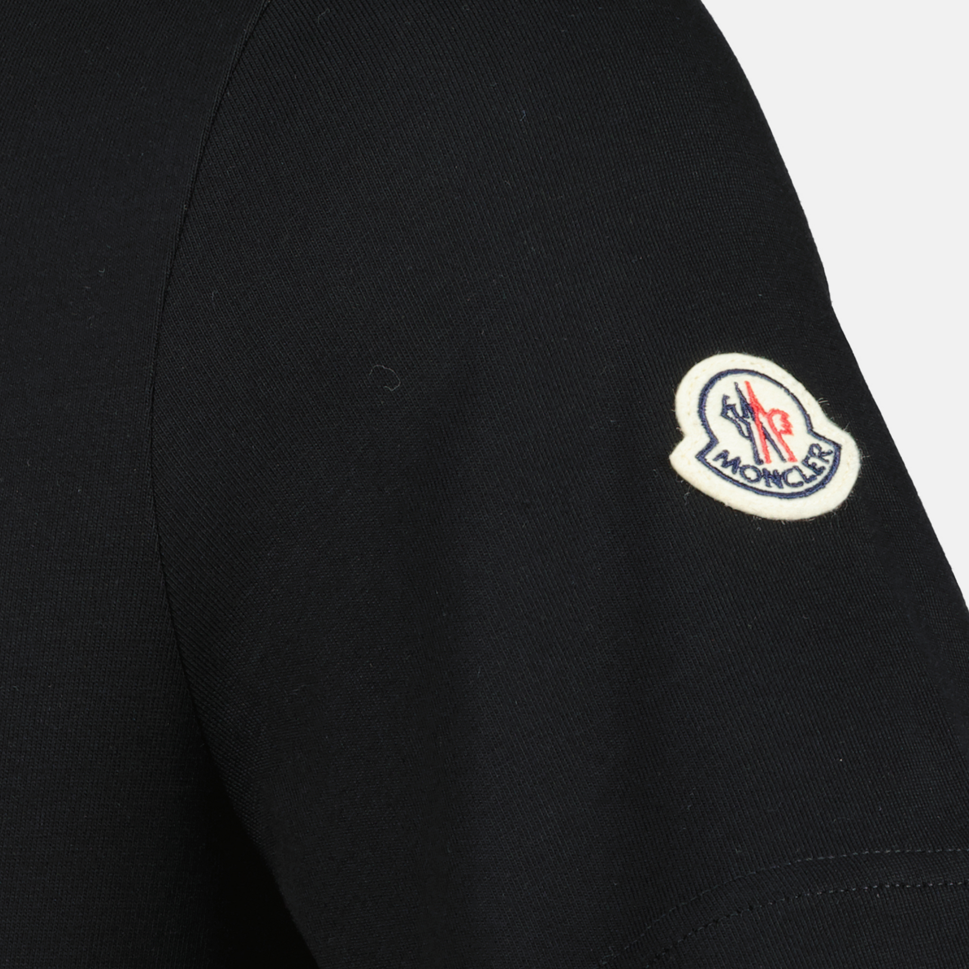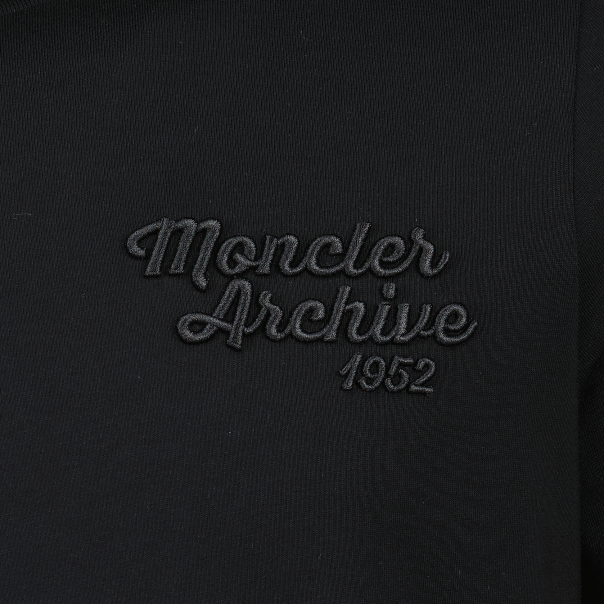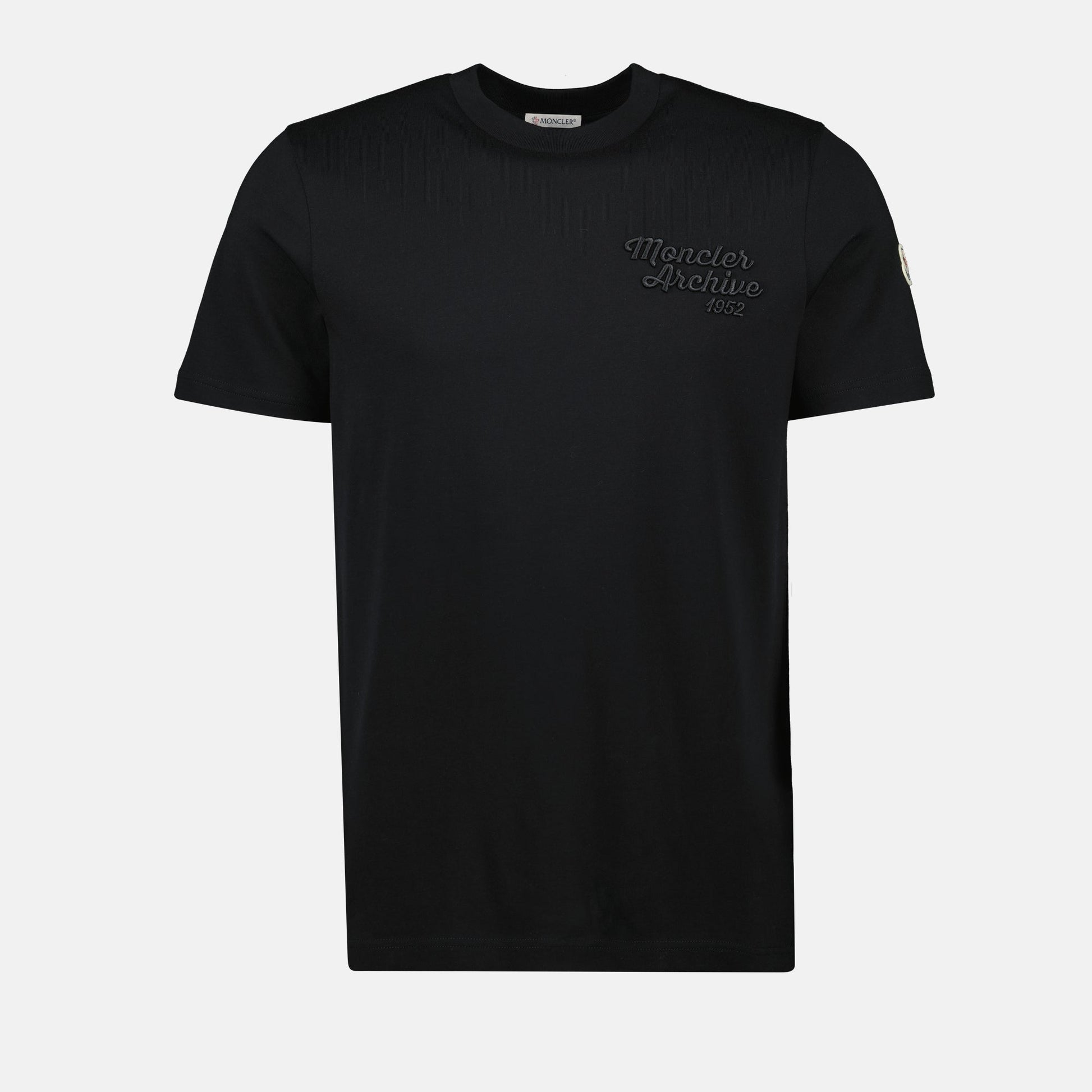 Black embroidered logo T-shirt from the Moncler brand for men. This model is part of the Spring-Summer 2025 collection and is made from cotton jersey with a round neck and short sleeves.